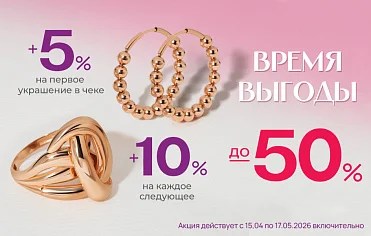 С приходом тепла не только одежда становится легче, но и появляется больше возможностей для демонстрации украшений. Массивные кольца и пуссеты будут великолепно смотреться с классическим тренчем и кожаной курткой оверсайз. К прозрачным блузкам прекрасно подойдут выразительные подвески, а к платьям в стиле slip dress — объемные серьги и жесткие браслеты. Для тех, кто активно вступил в новый модный сезон и уже подбирает украшения на лето, ювелирная сеть AURUM подготовила новые акционные возможности*. С 15 апреля по 17 мая 2026 года включительно** будут действовать скидки по прайсу: