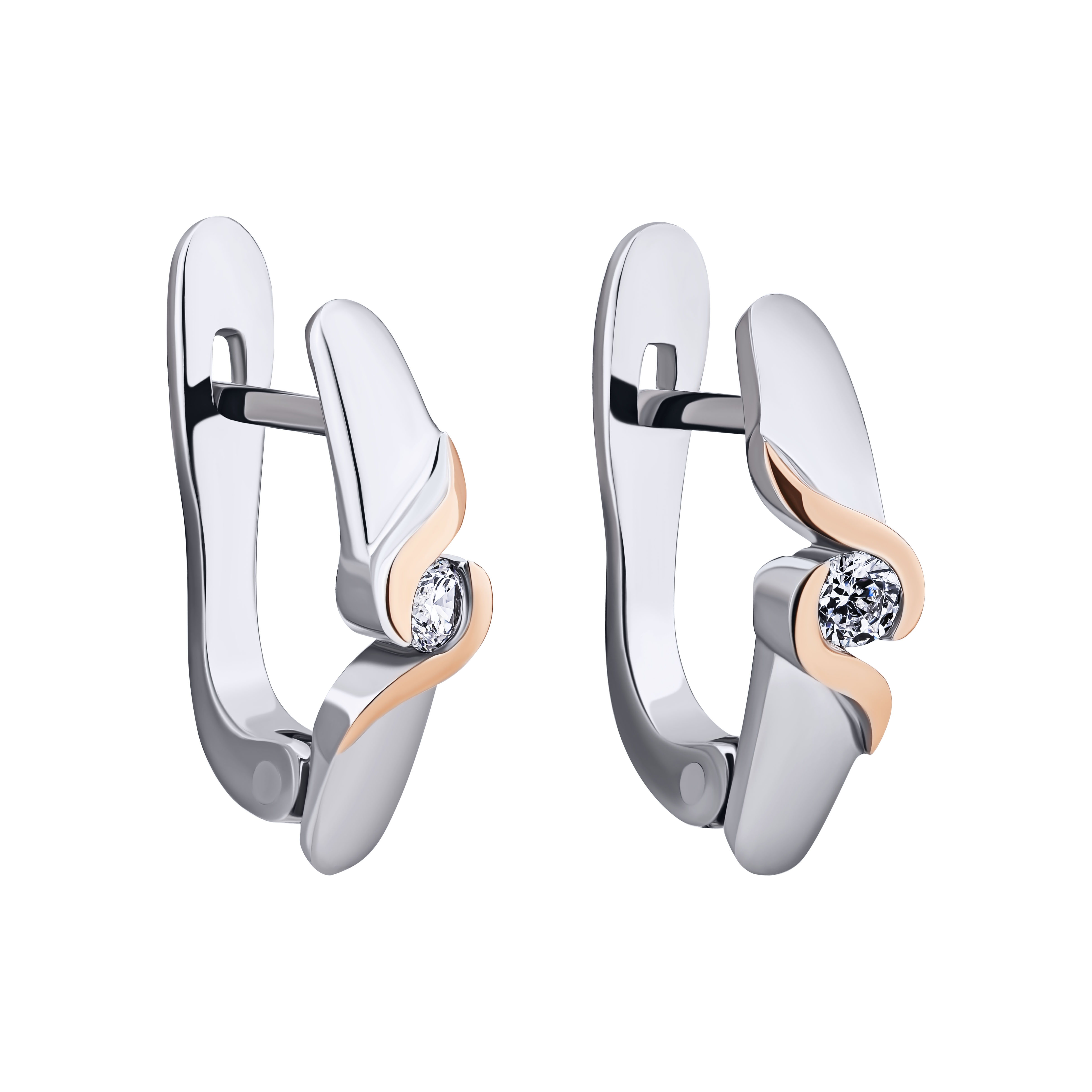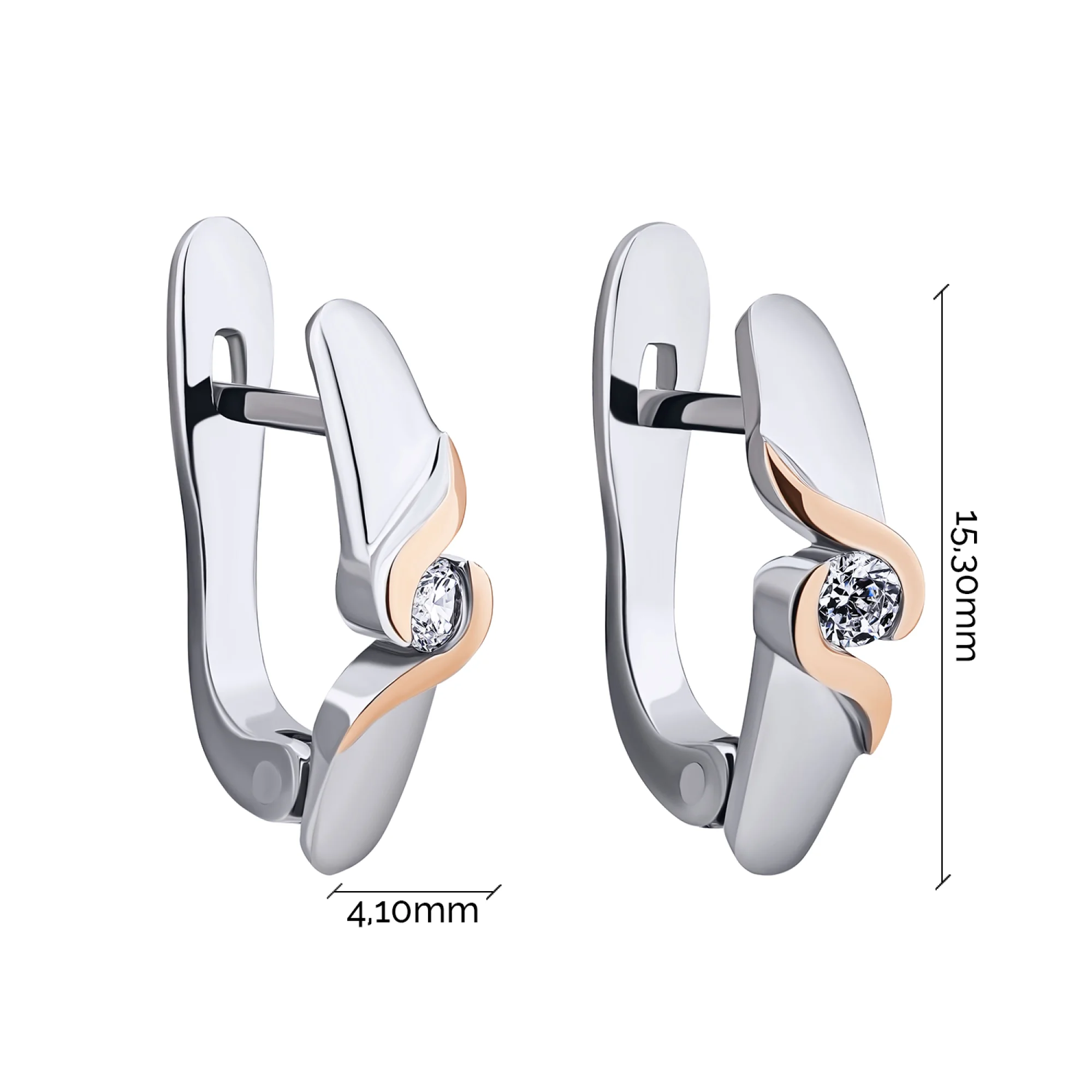 Серебряные серьги с золотой накладкой и фианитом - 2112363