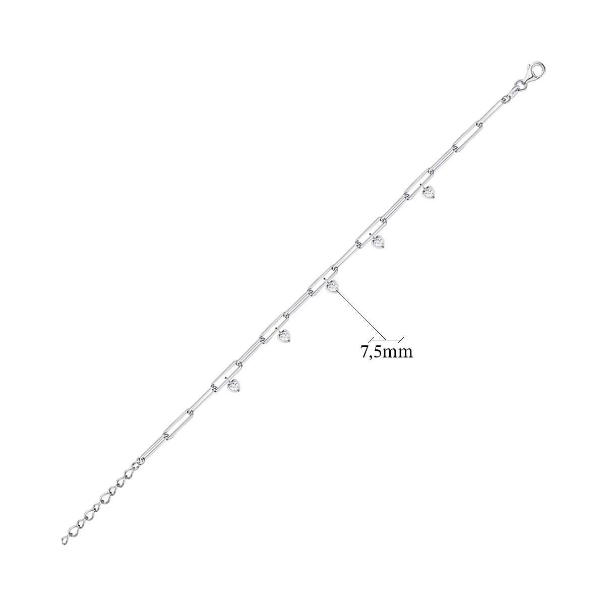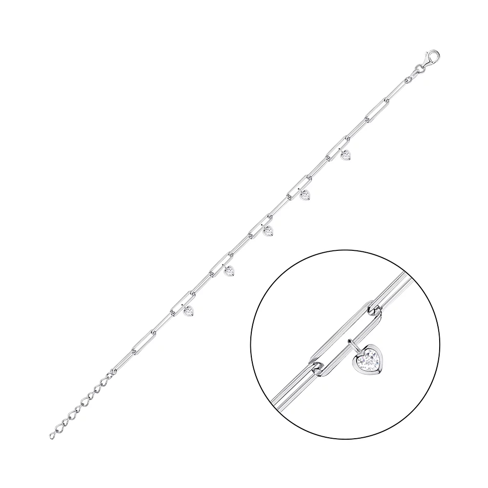 Браслет из серебра с подвесами Сердечки с фианитом Якорное плетение - 1303065