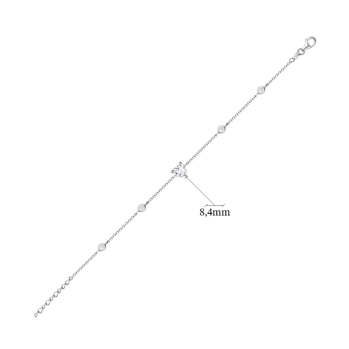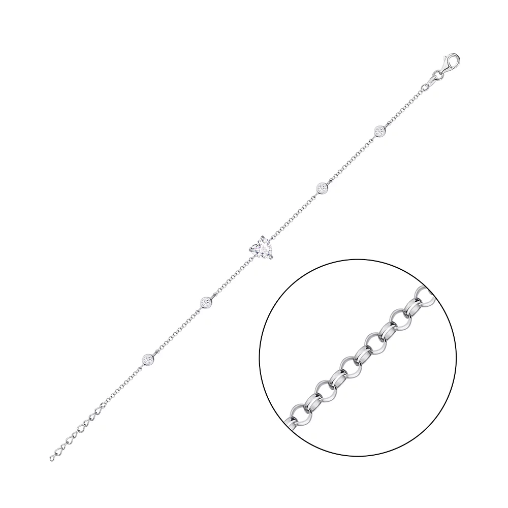 Браслет из серебра "Сердце" с фианитом плетение якорное - 1343385