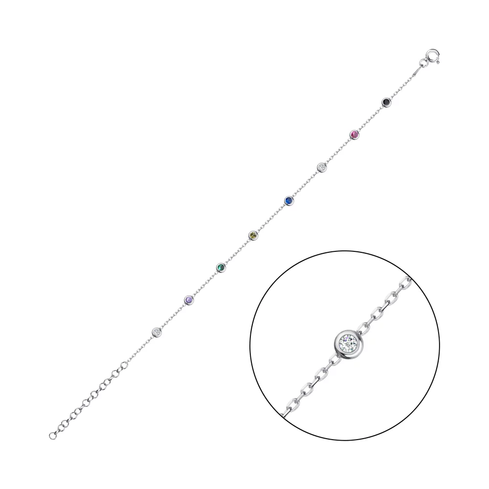 Браслет из серебра с разноцветными альпинитами якорное плетение - 1336609