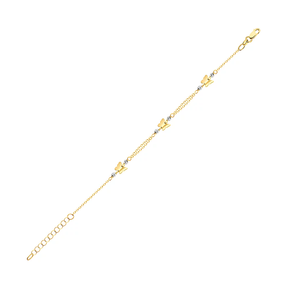 Браслет двойной из комбинированного золота с шариками якорного плетения - 1825514