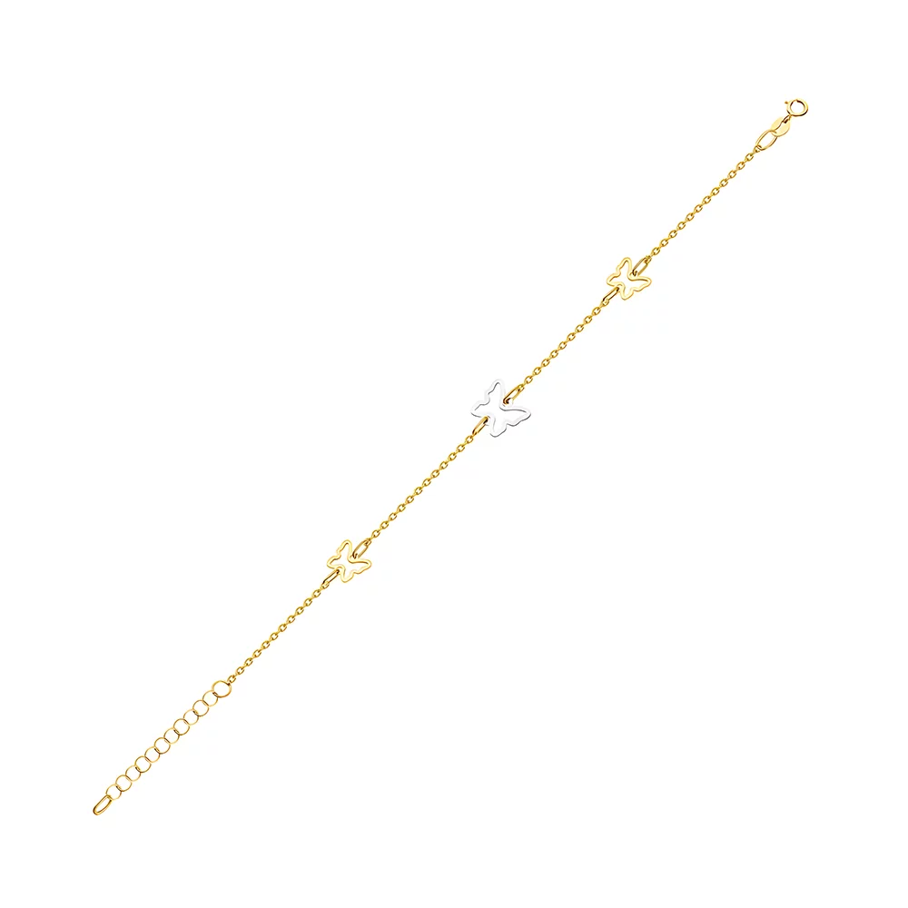 Браслет "Бабочки" из желтого и белого золота плетение якорное - 1526703