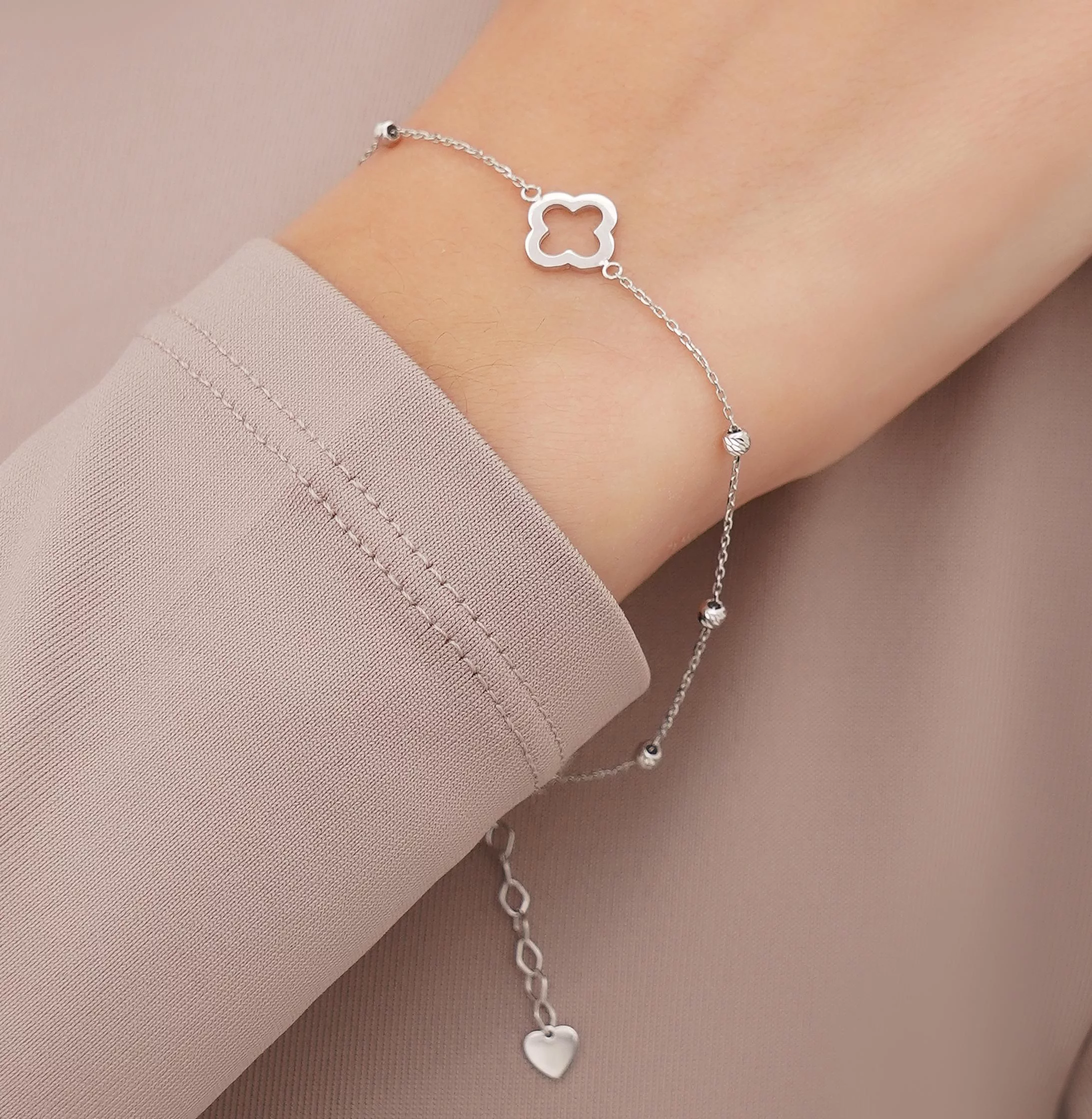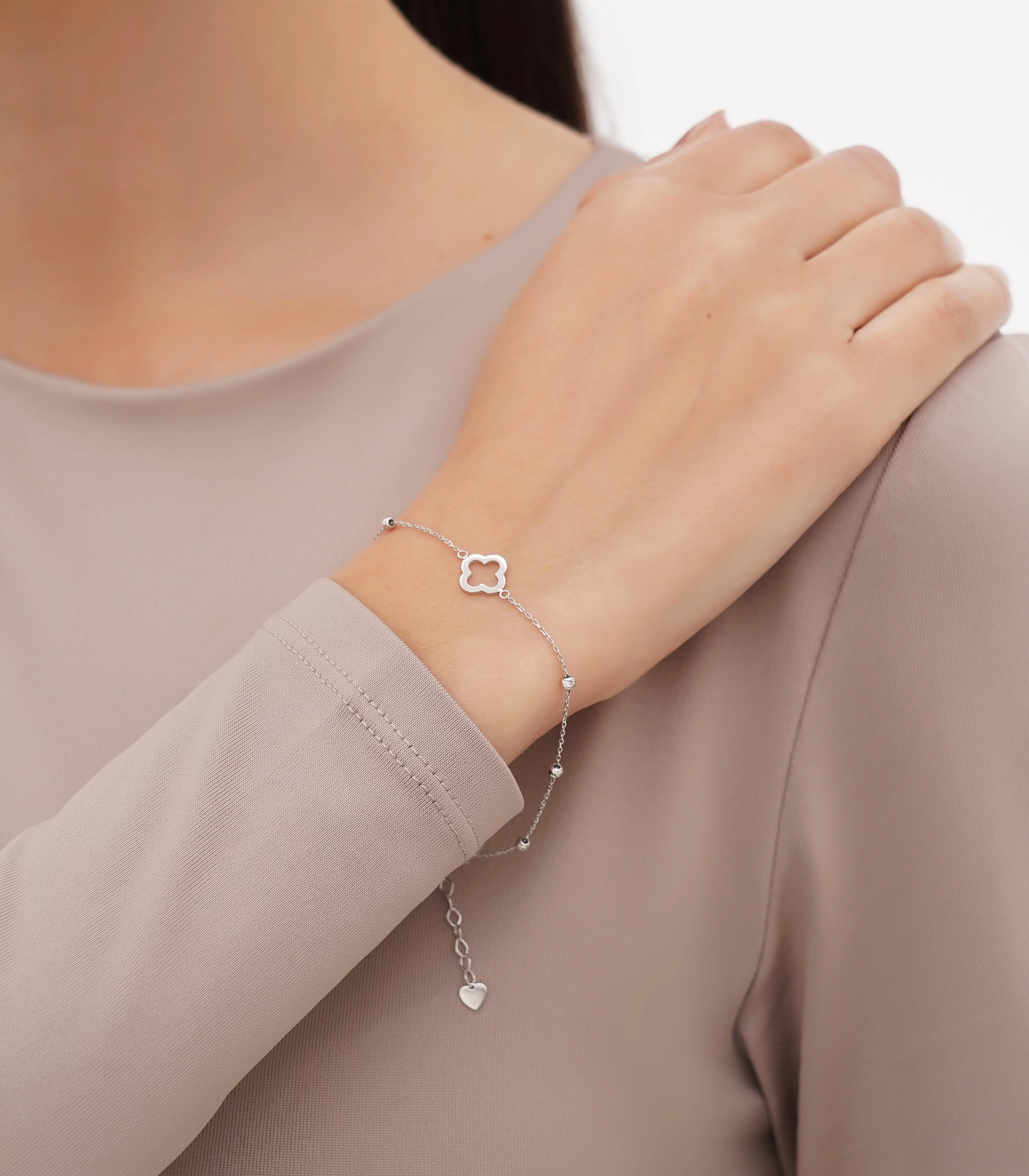 Браслет двойной из белого золота якорного плетения с шариками - 1825510