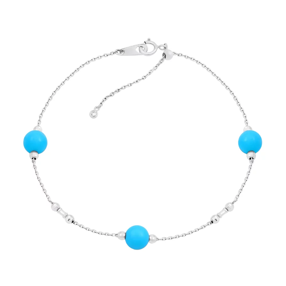 Браслет из белого золота с бирюзой и бриллиантом - 1476541