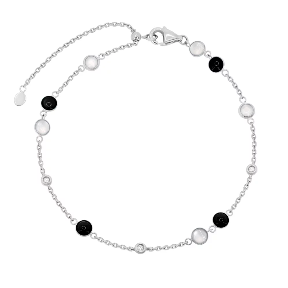 Браслет из белого золота с бриллиантами, ониксом и белым агатом - 1484324