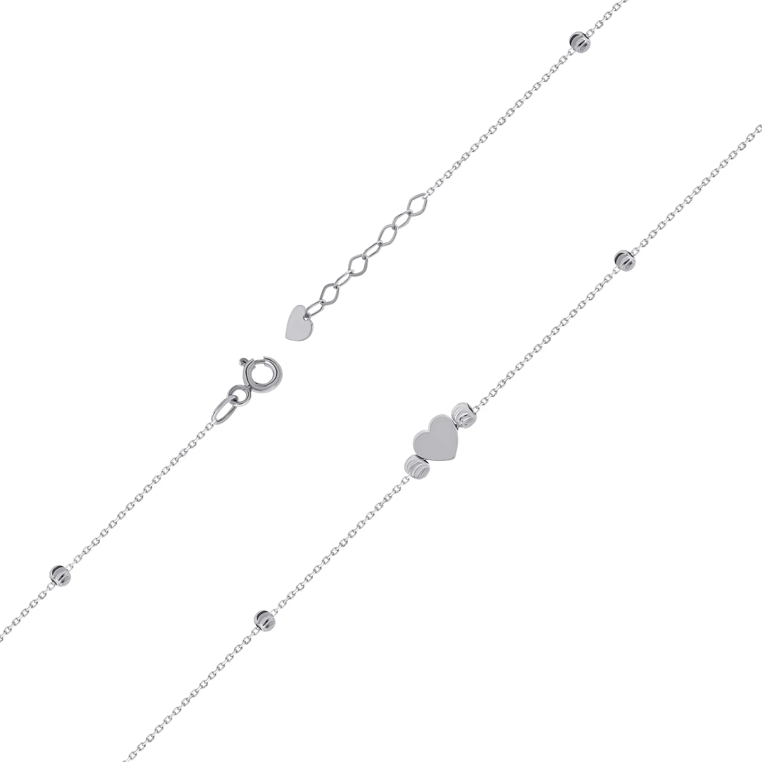 Браслет в белом золоте с подвесом "Сердечко" плетение якорное и шопард - 1653229