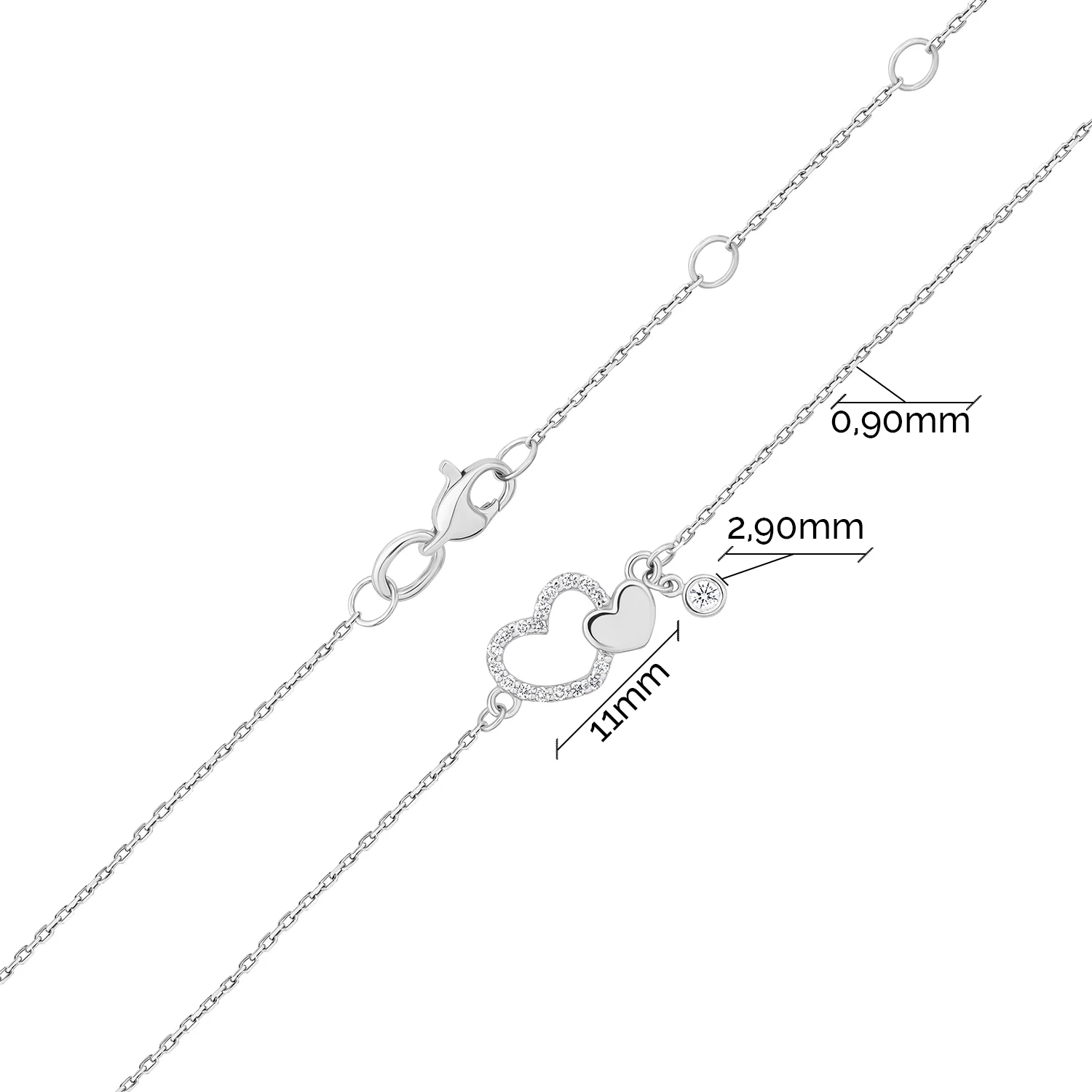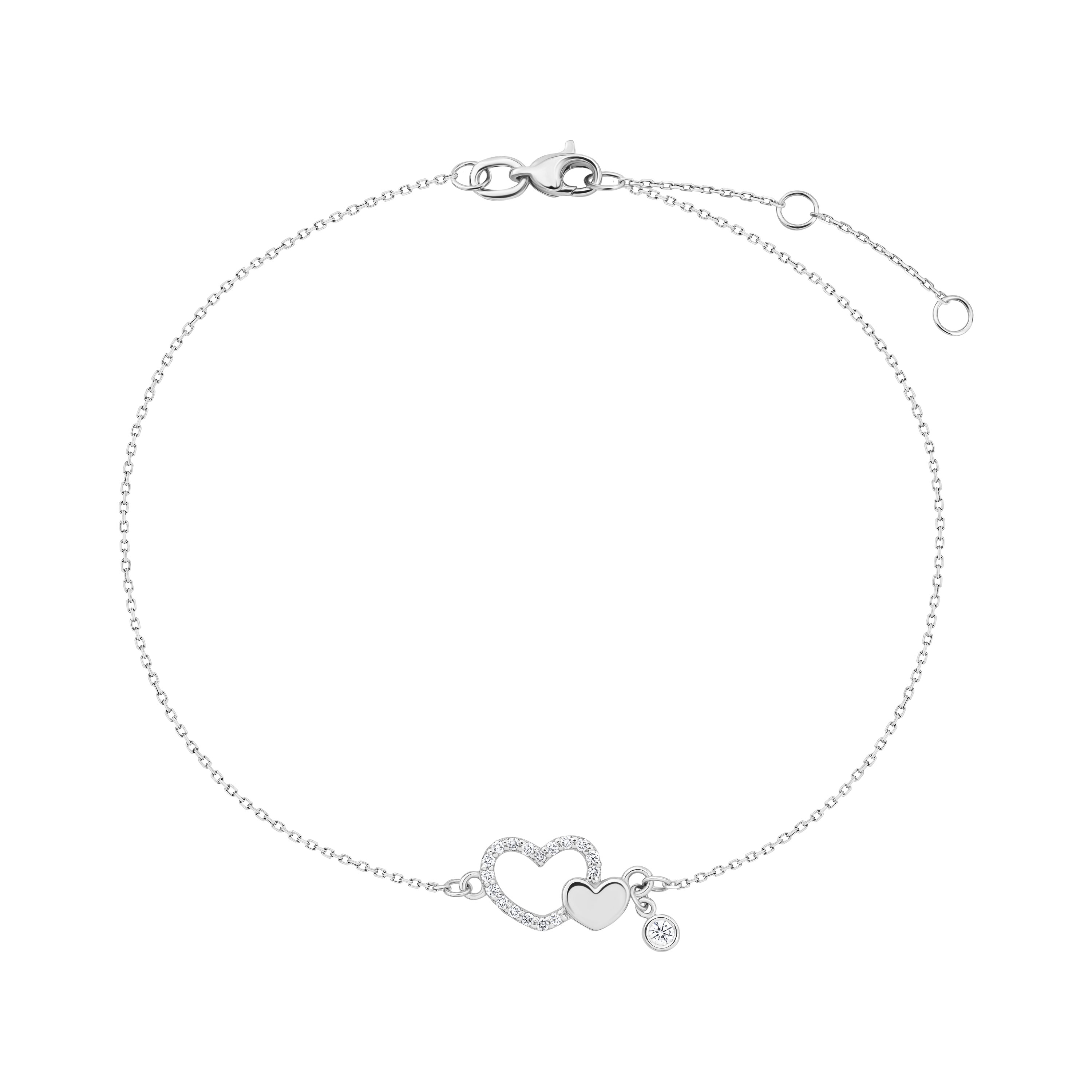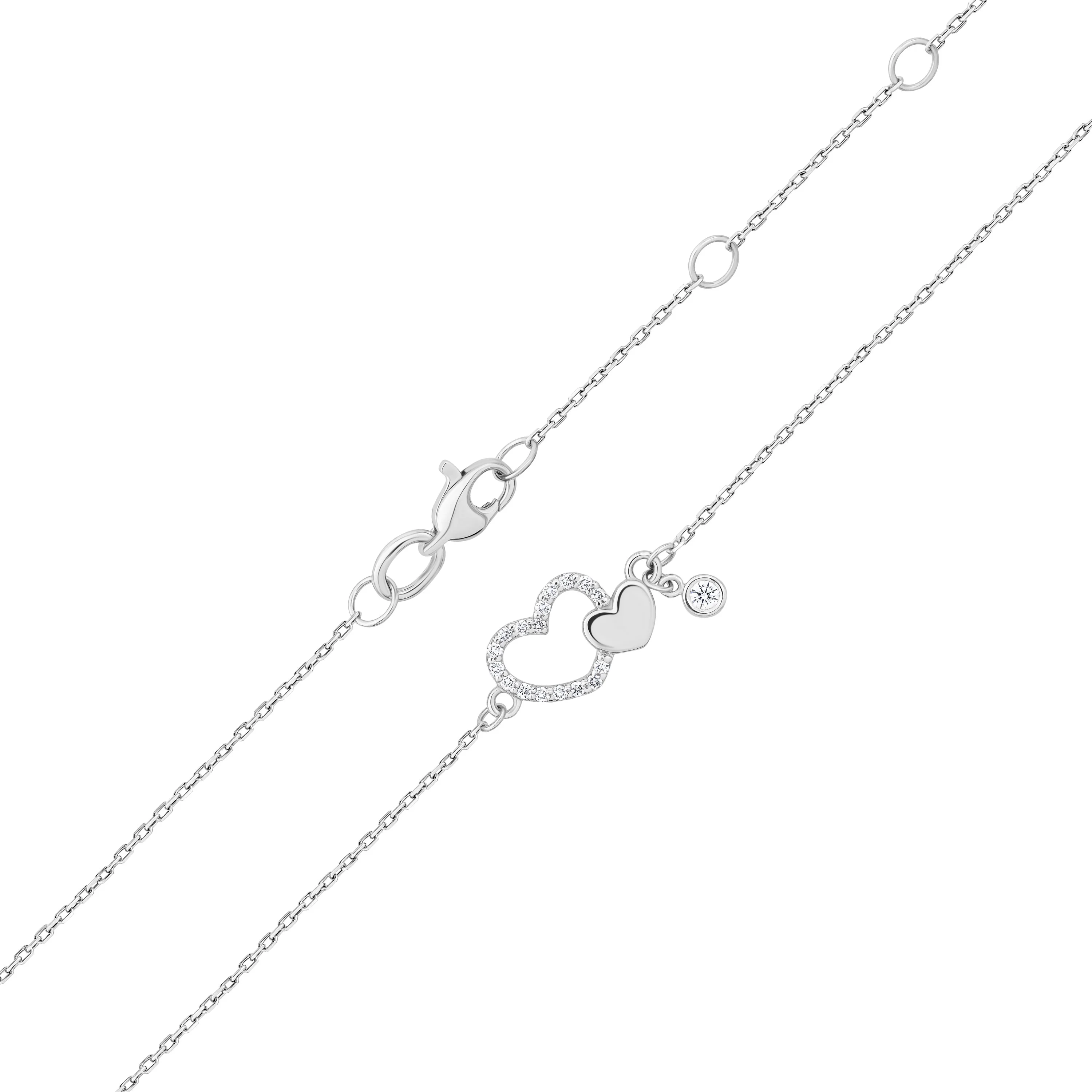 Браслет из белого золота "Сердца" с подвесом и бриллиантами плетение якорь - 2147294