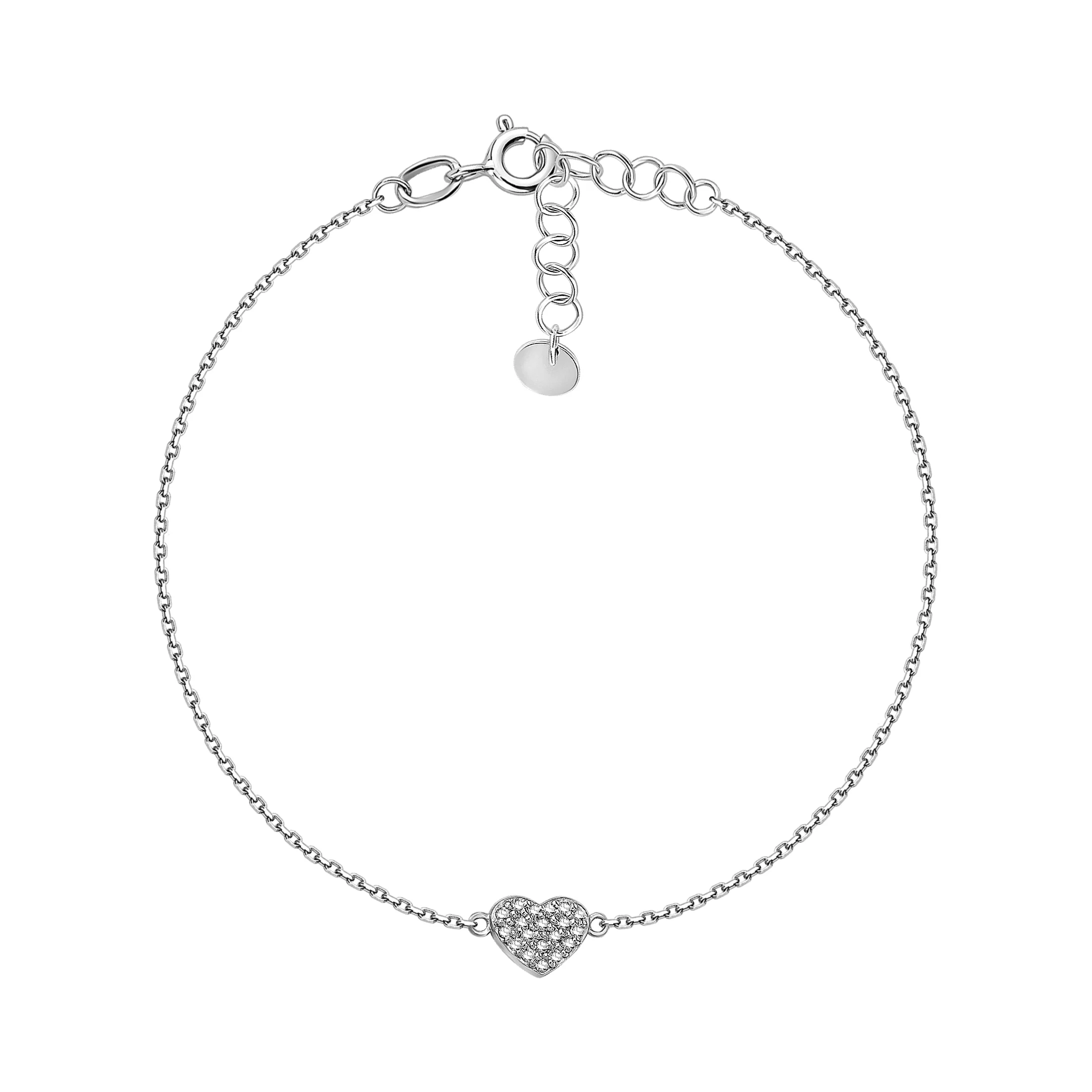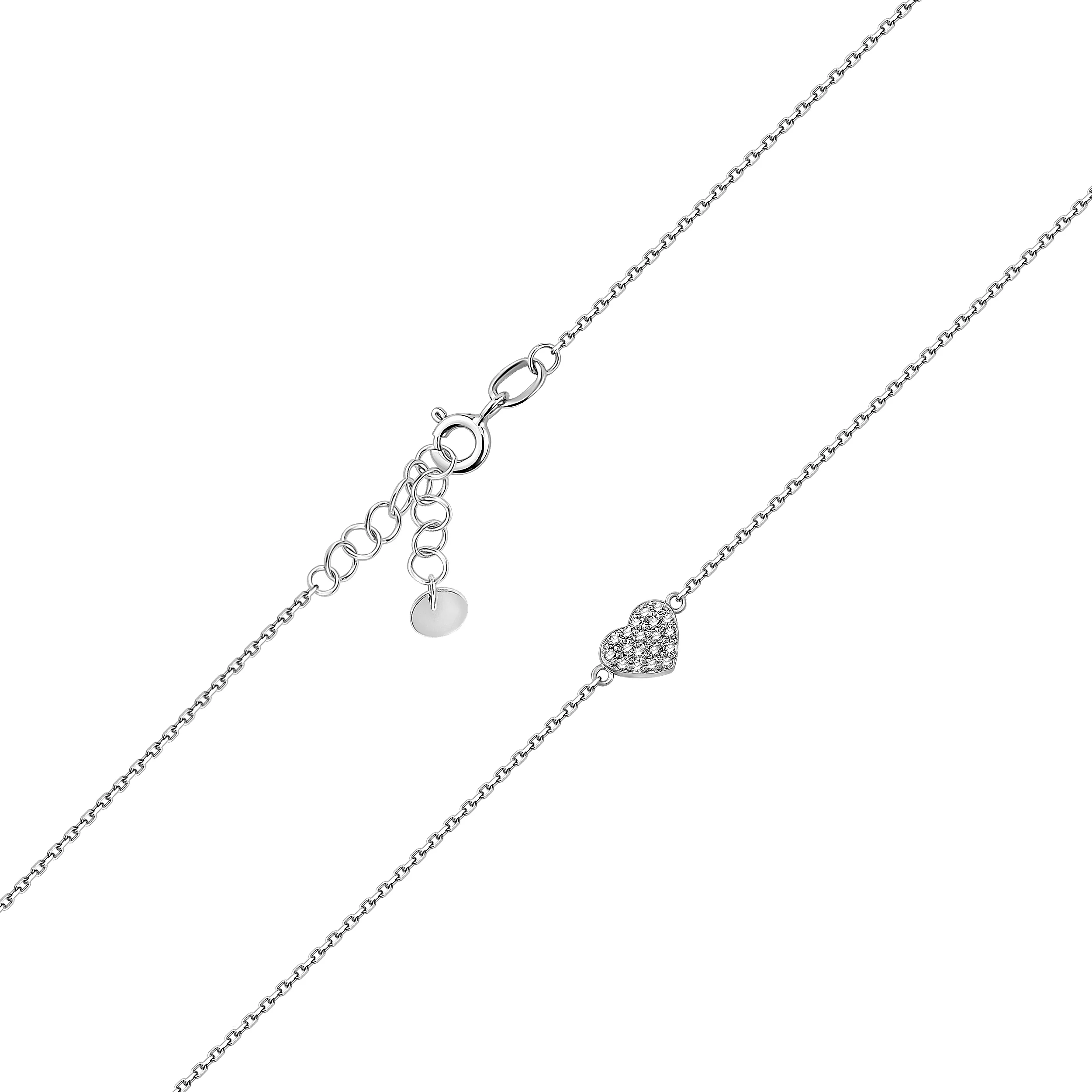 Браслет из белого золота "Сердце" с бриллиантами плетение якорь - 2142381