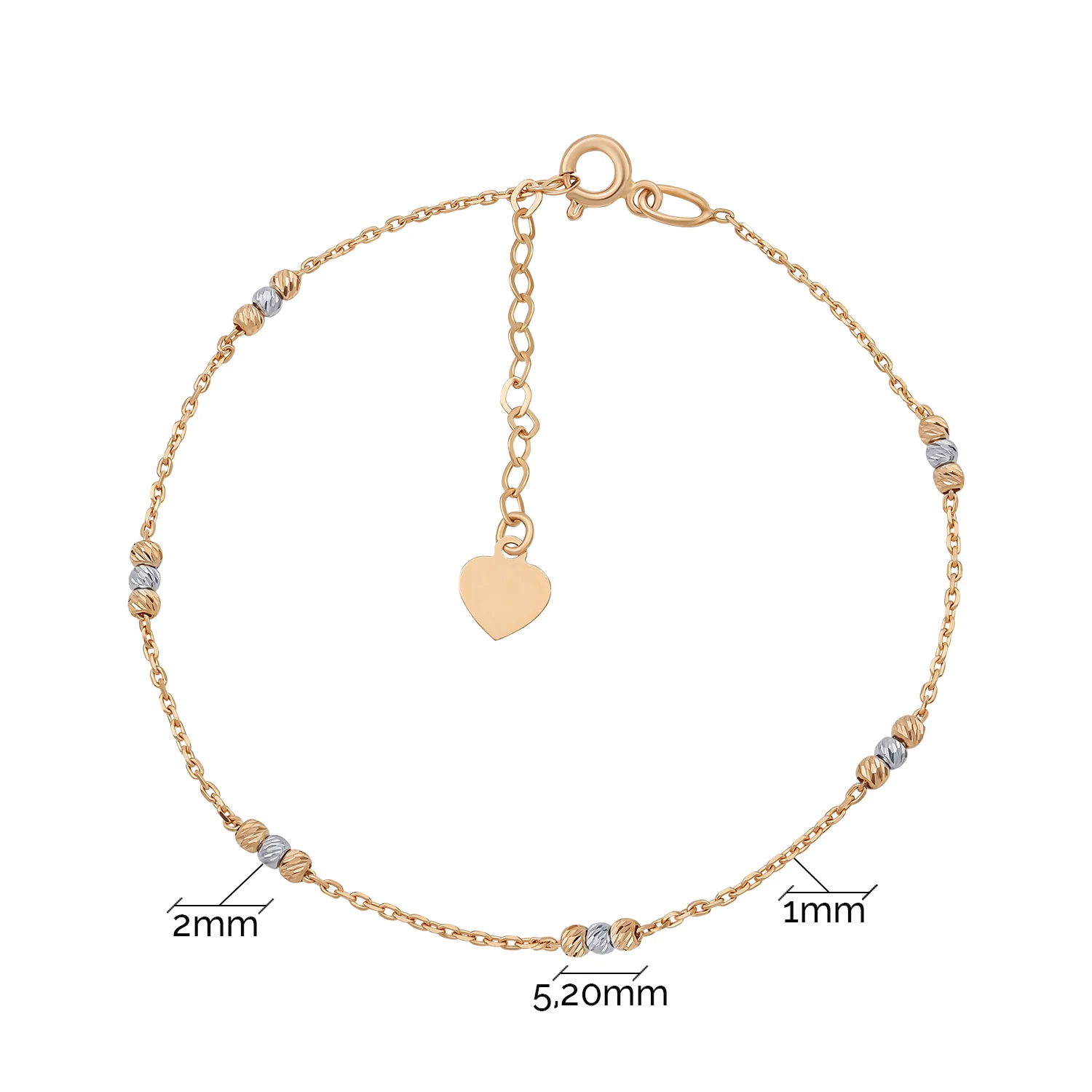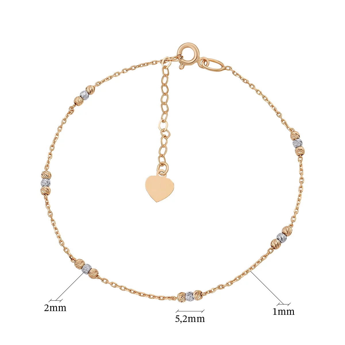 Браслет из комбинированного золота с шариками с якорным плетением - 890883