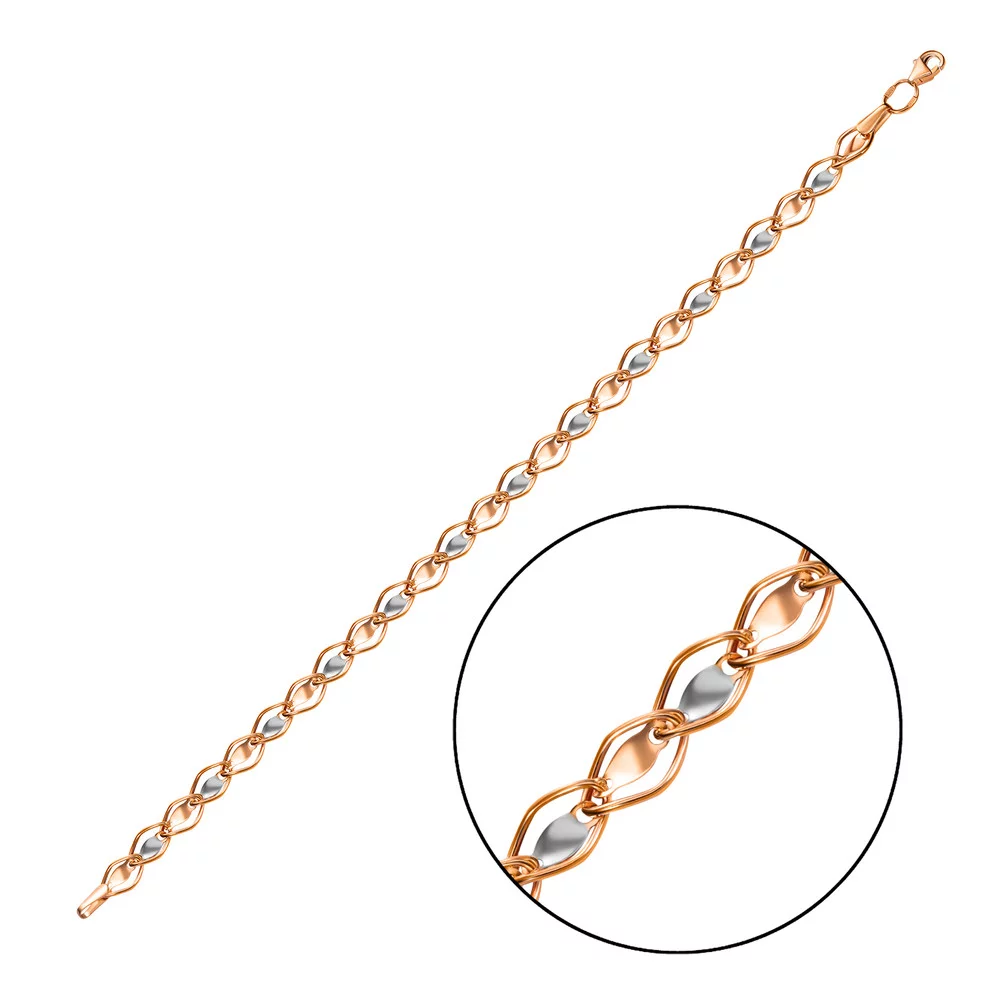Браслет из комбинированного золота плетение якорь и шопард "Сердце" - 1499316