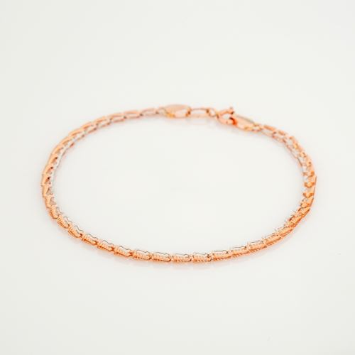 Браслет в комбинированном золоте "Сердечки" плетение фантазия - 1698453