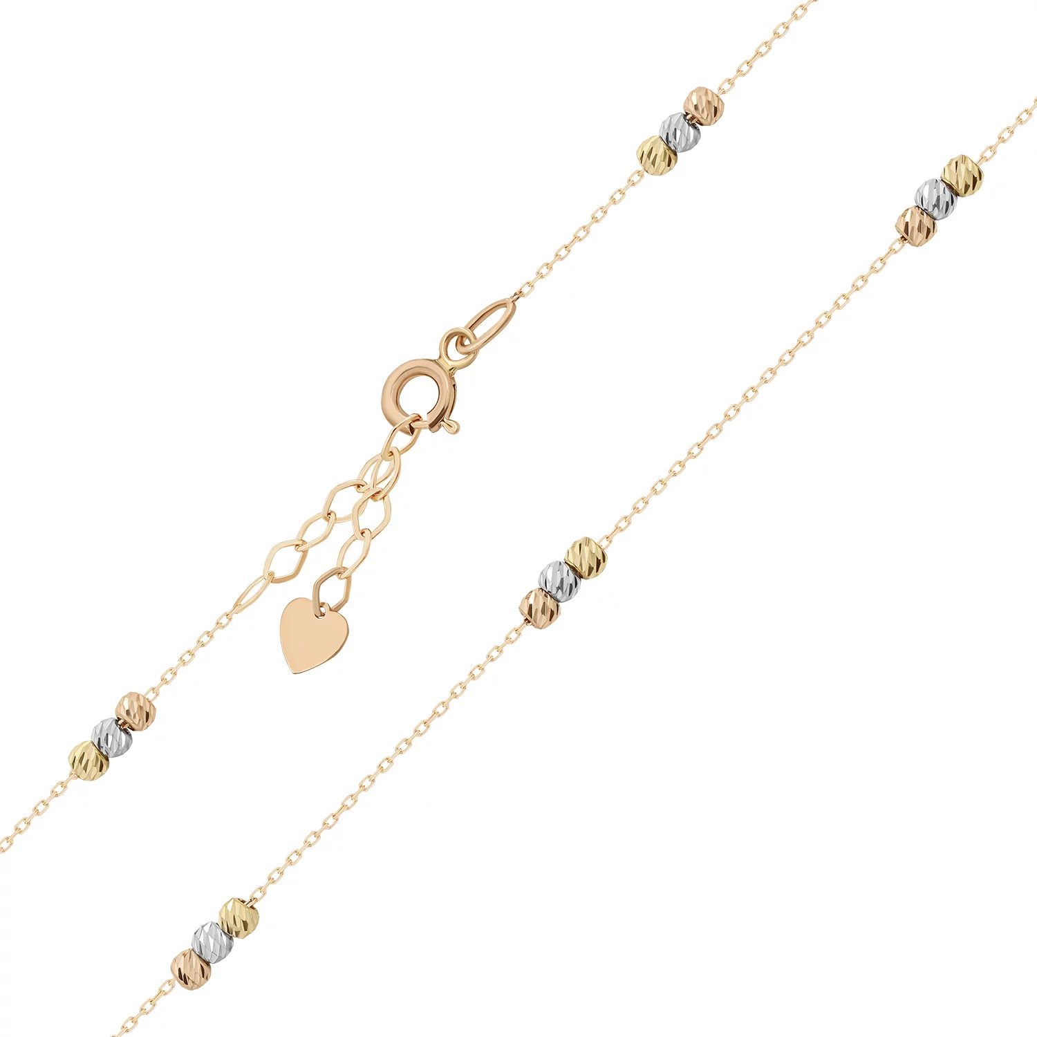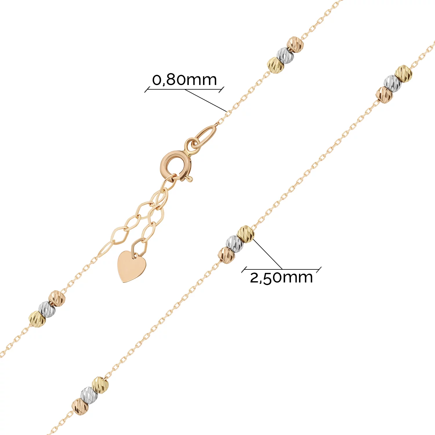 Браслет из комбинированного золота "Шарики" якорное плетение - 1544397