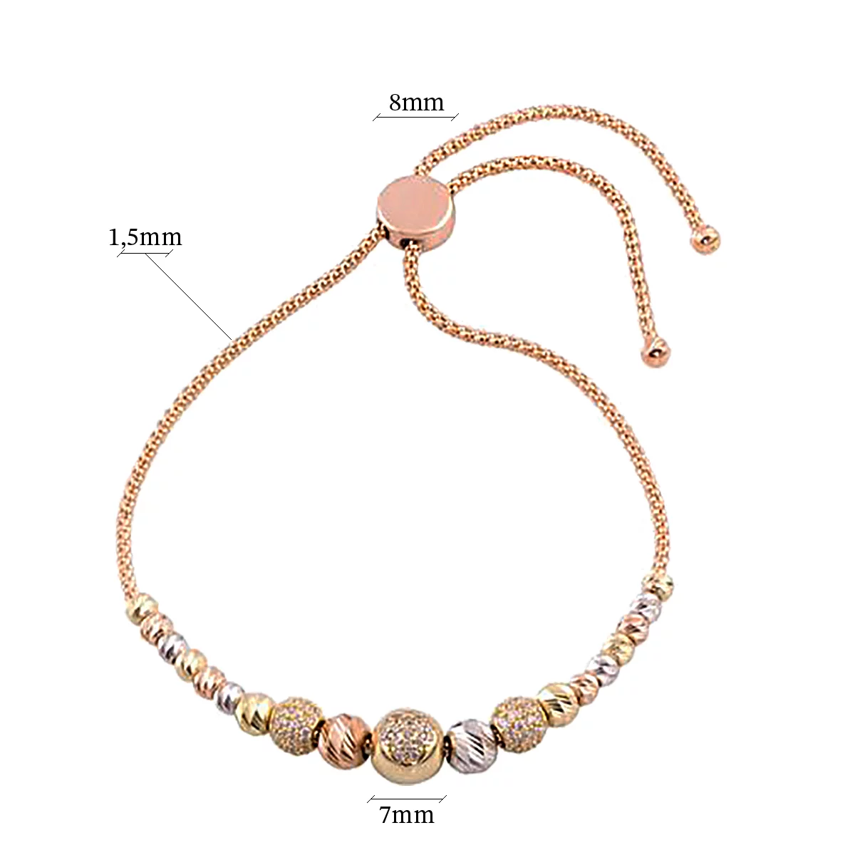 Браслет Шары из комбинированного золота с фианитом - 1099047
