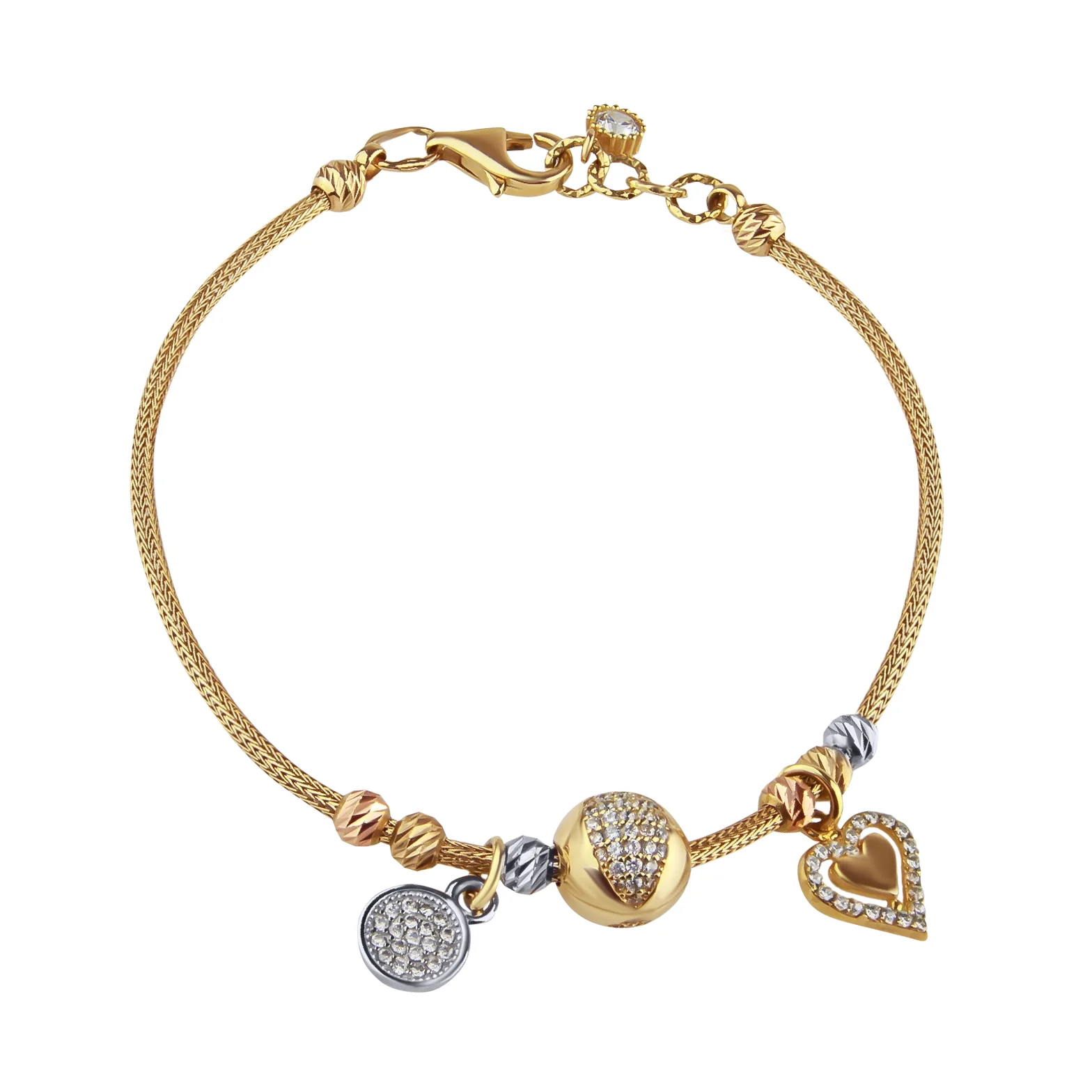 Браслет из комбинированного золота с подвесами фианитом плетение Снейк - 1405845