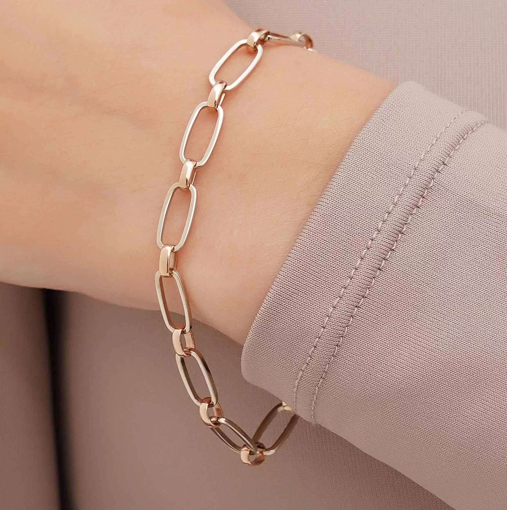 Браслет из комбинированного золота плетение якорь и шопард "Сердце" - 1499316