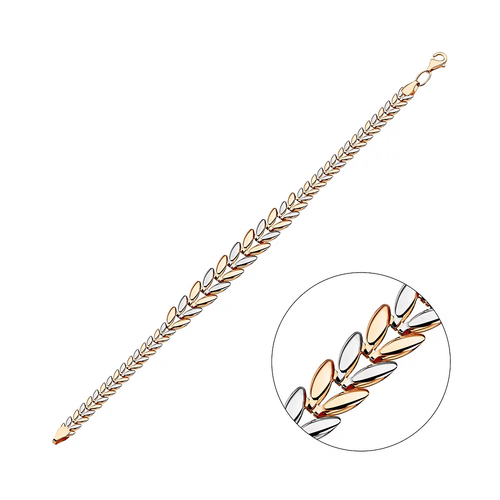 Браслет в комбинированном золоте "Сердечки" плетение фантазия - 1698453
