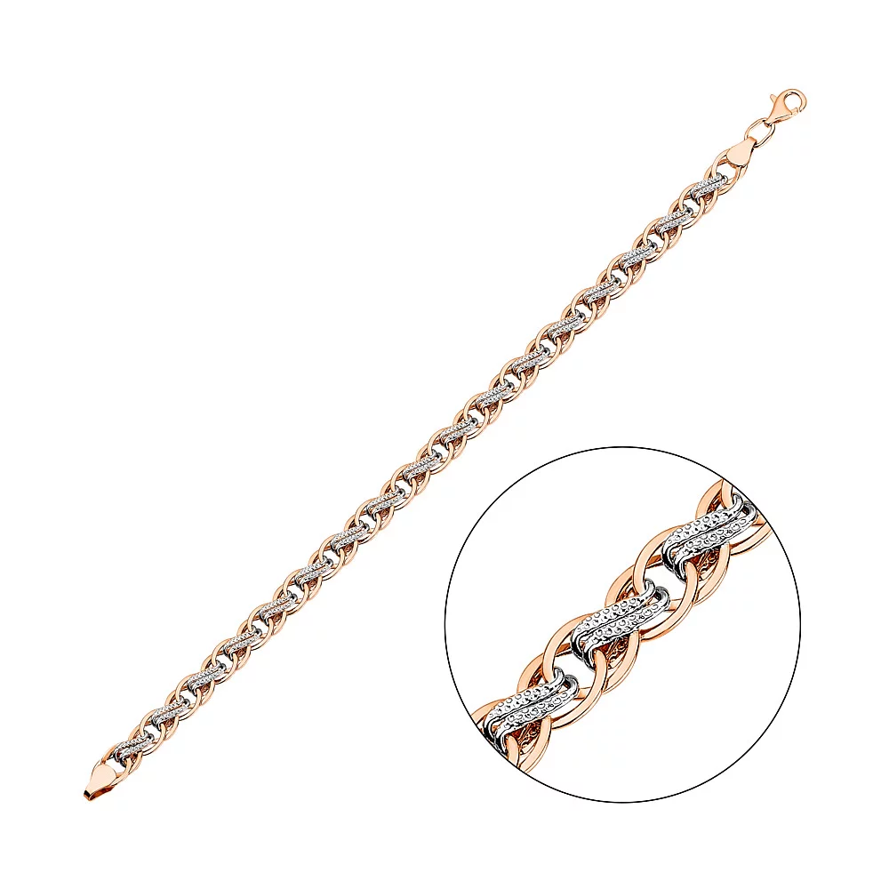 Браслет в комбинированном золоте "Сердечки" плетение фантазия - 1698453