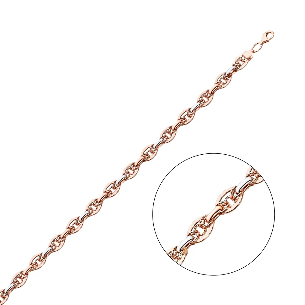 Браслет в комбинированном золоте "Сердечки" плетение фантазия - 1698453