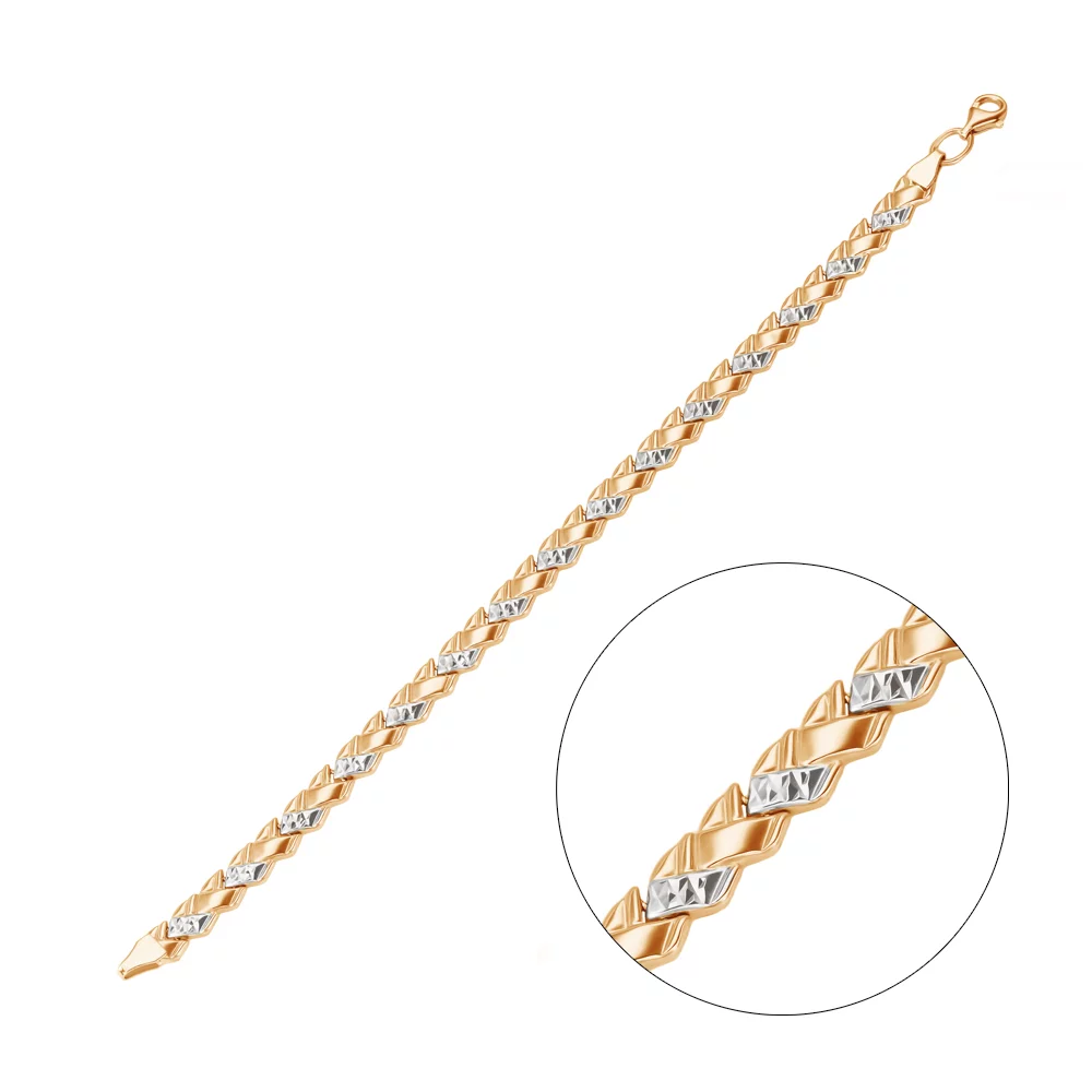 Браслет из комбинированного золота с алмазной гранью плетение ролекс - 970312