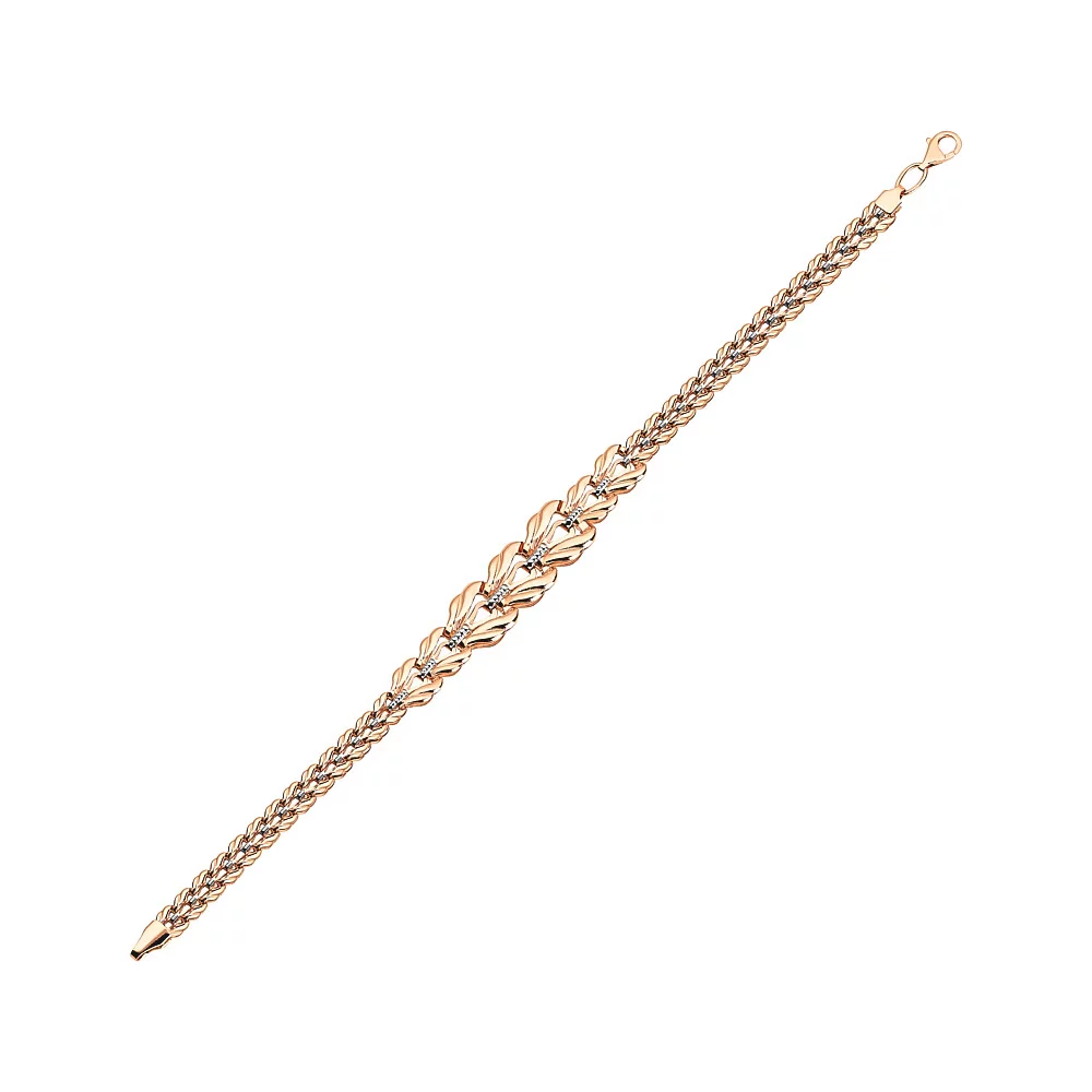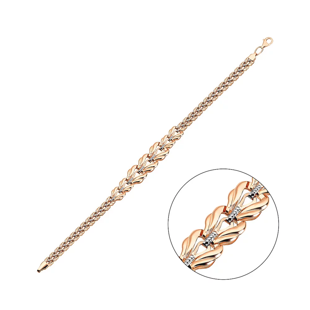 Браслет из красного цвета золота с родированием и алмазной гранью плетение фантазия - 1531691