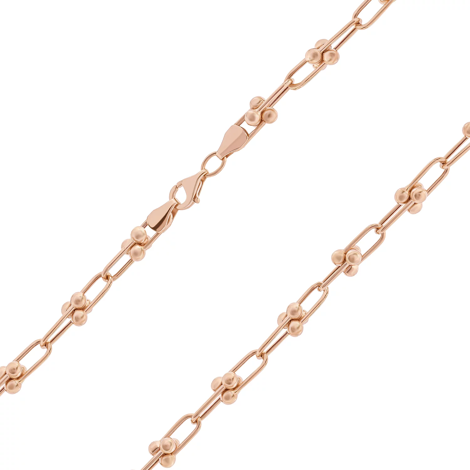 Браслет из красного золота с шариками и алмазной гранью плетение якорь - 1698647