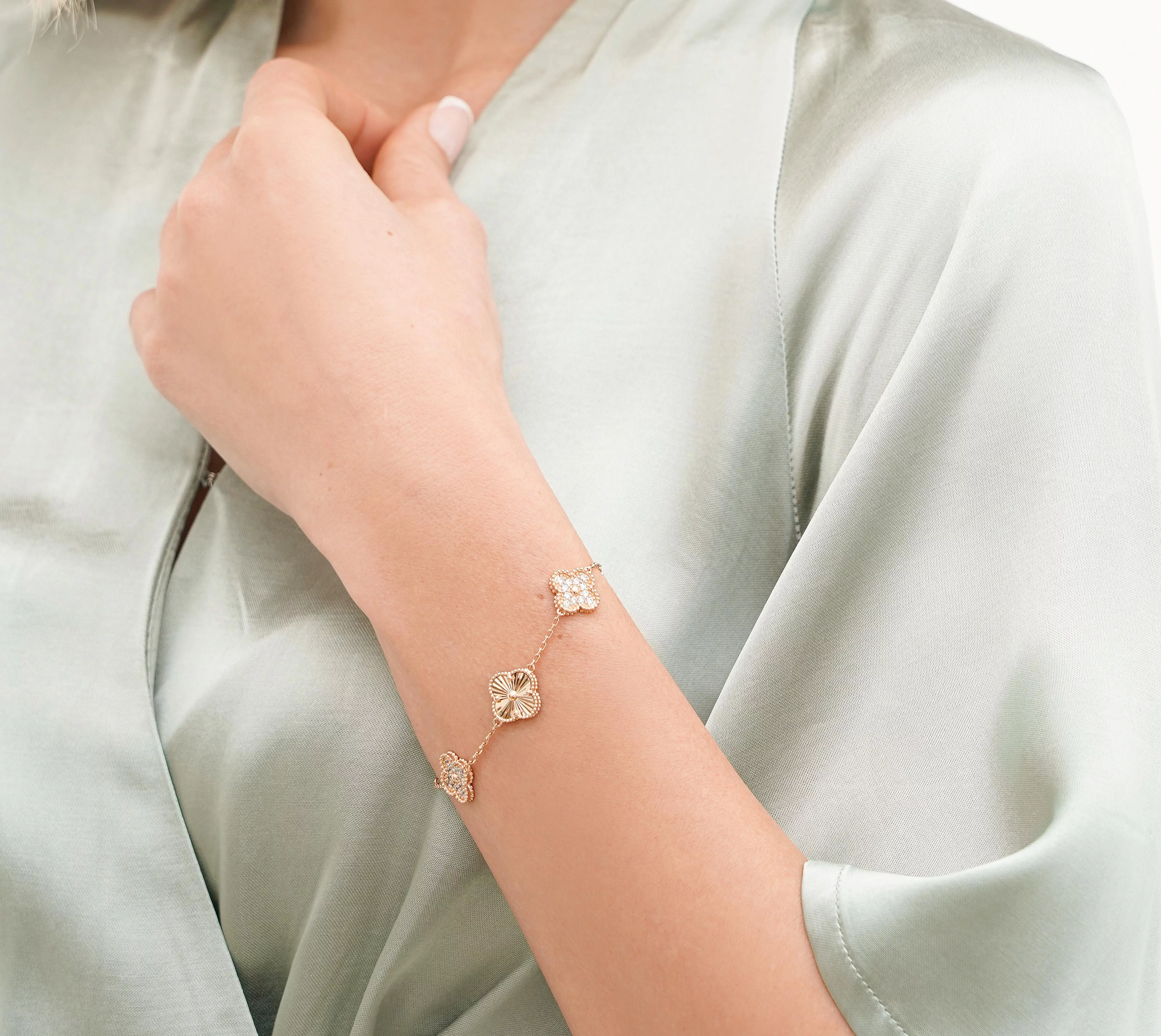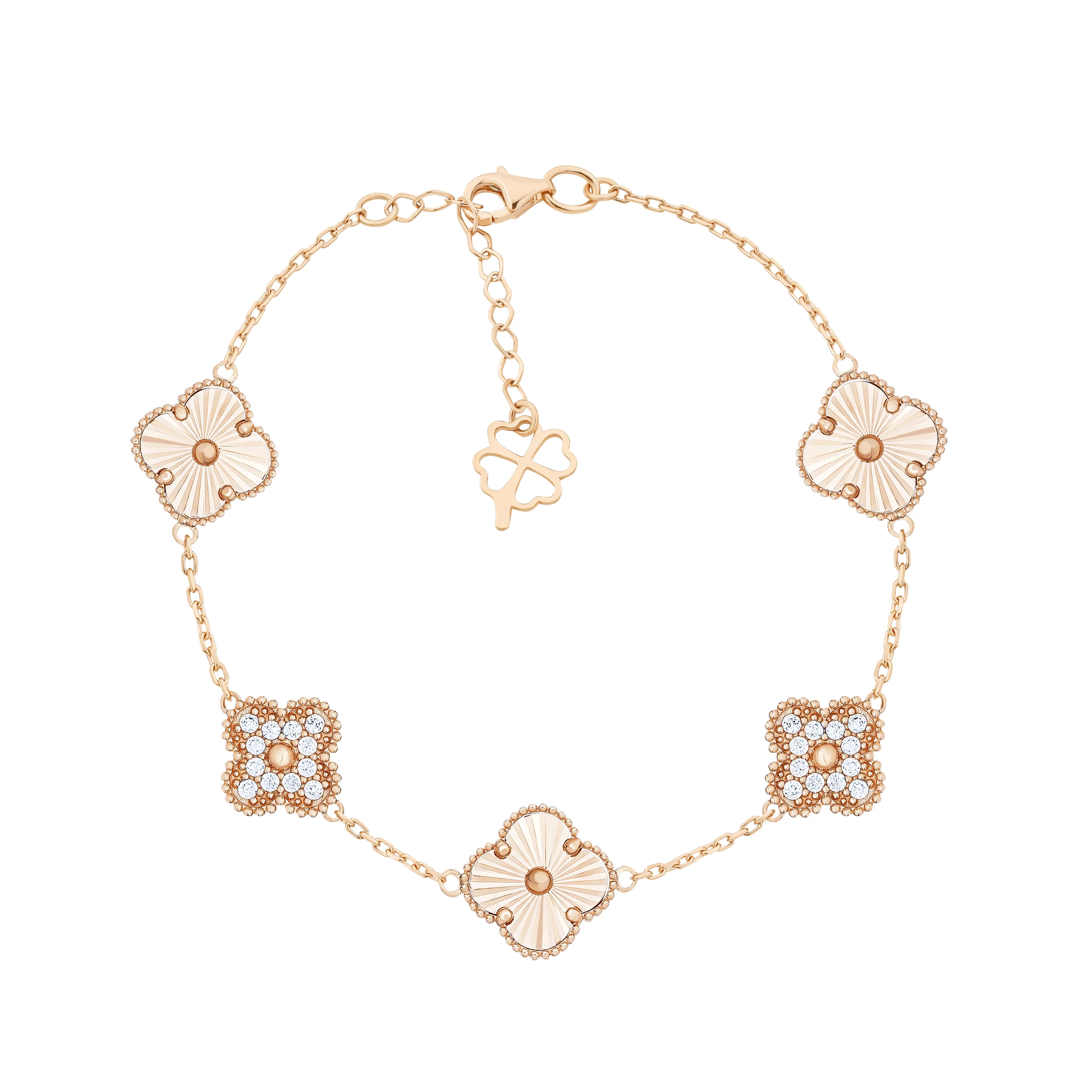 Браслет из красного золота с агатом "Клевер" в якорном плетении - 367456