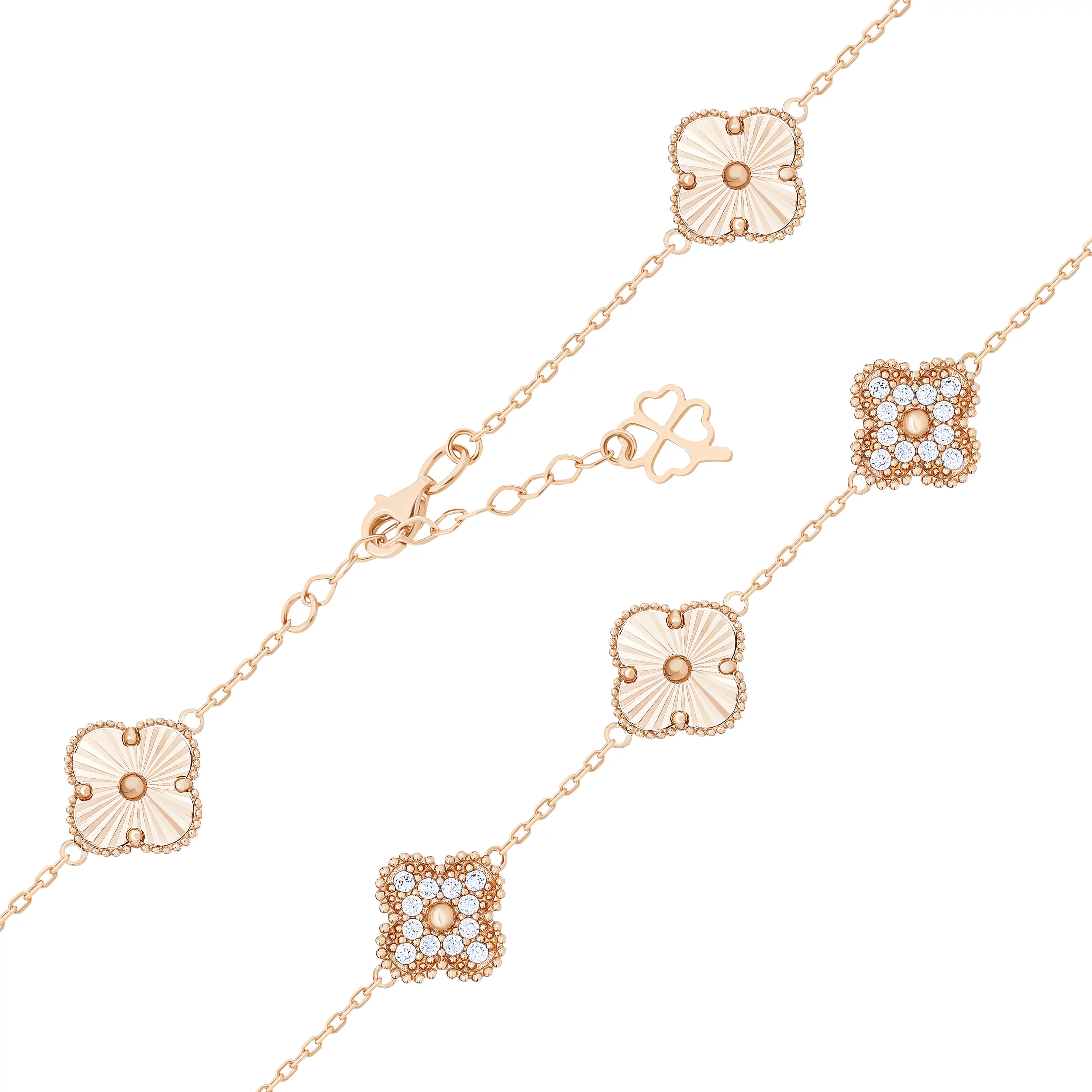 Браслет "Клевер" из красного золота с ониксом в якорном плетении - 1747727
