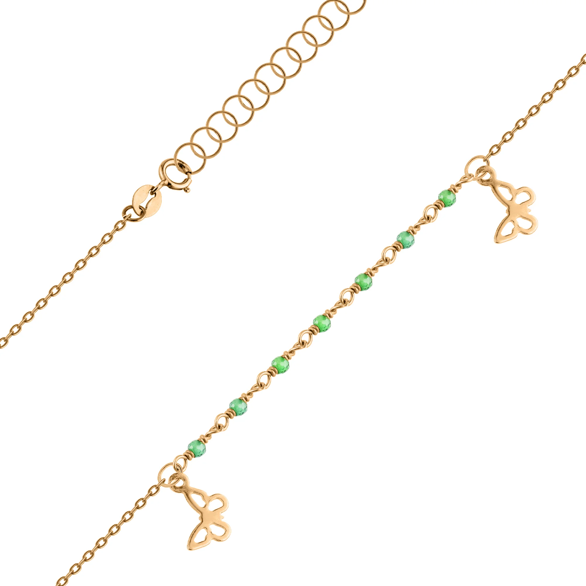 Браслет из красного золота с подвесками и фианитом плетение якорь - 1426129