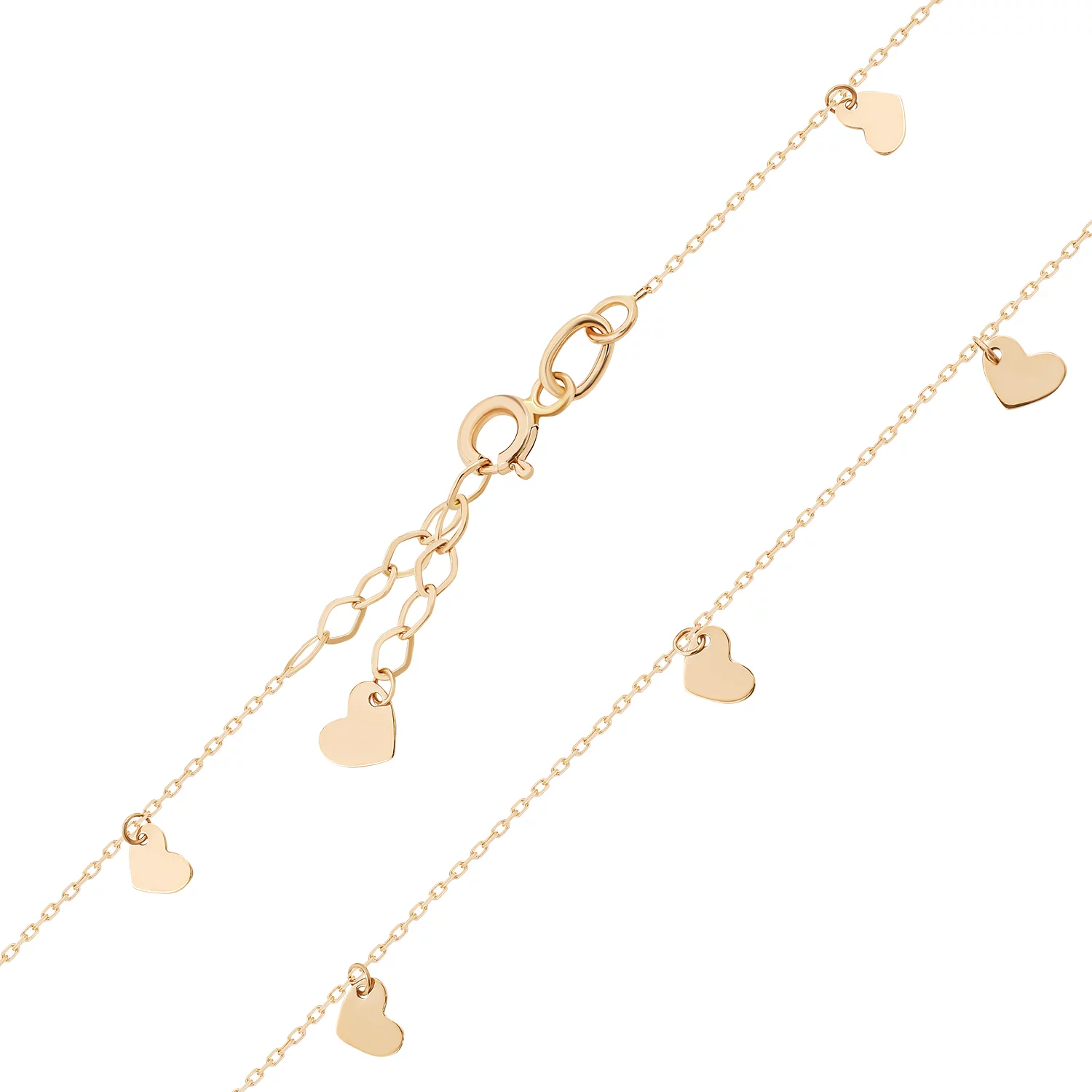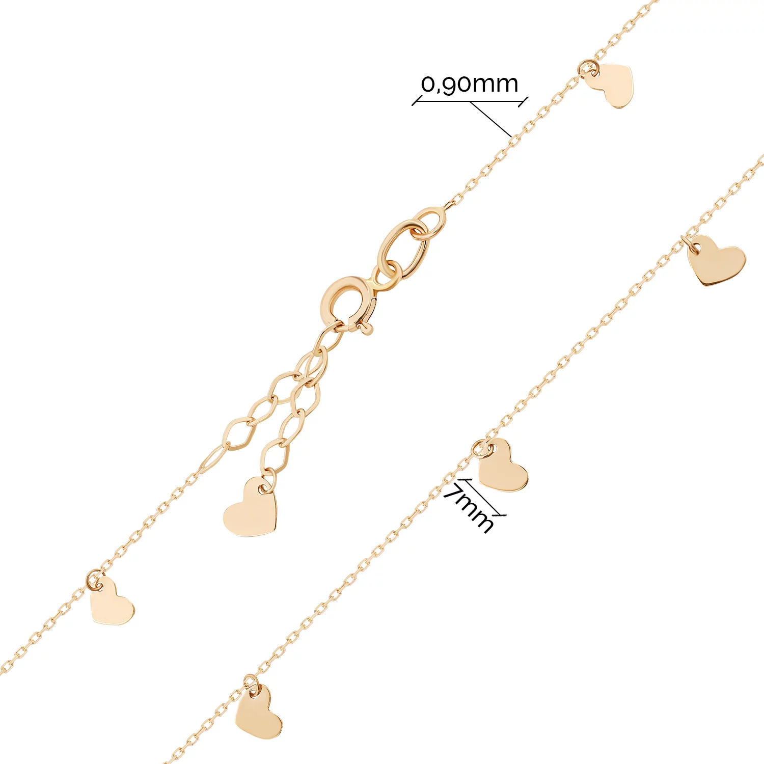Браслет из красного золота "Сердечки" плетение якорное - 1529861