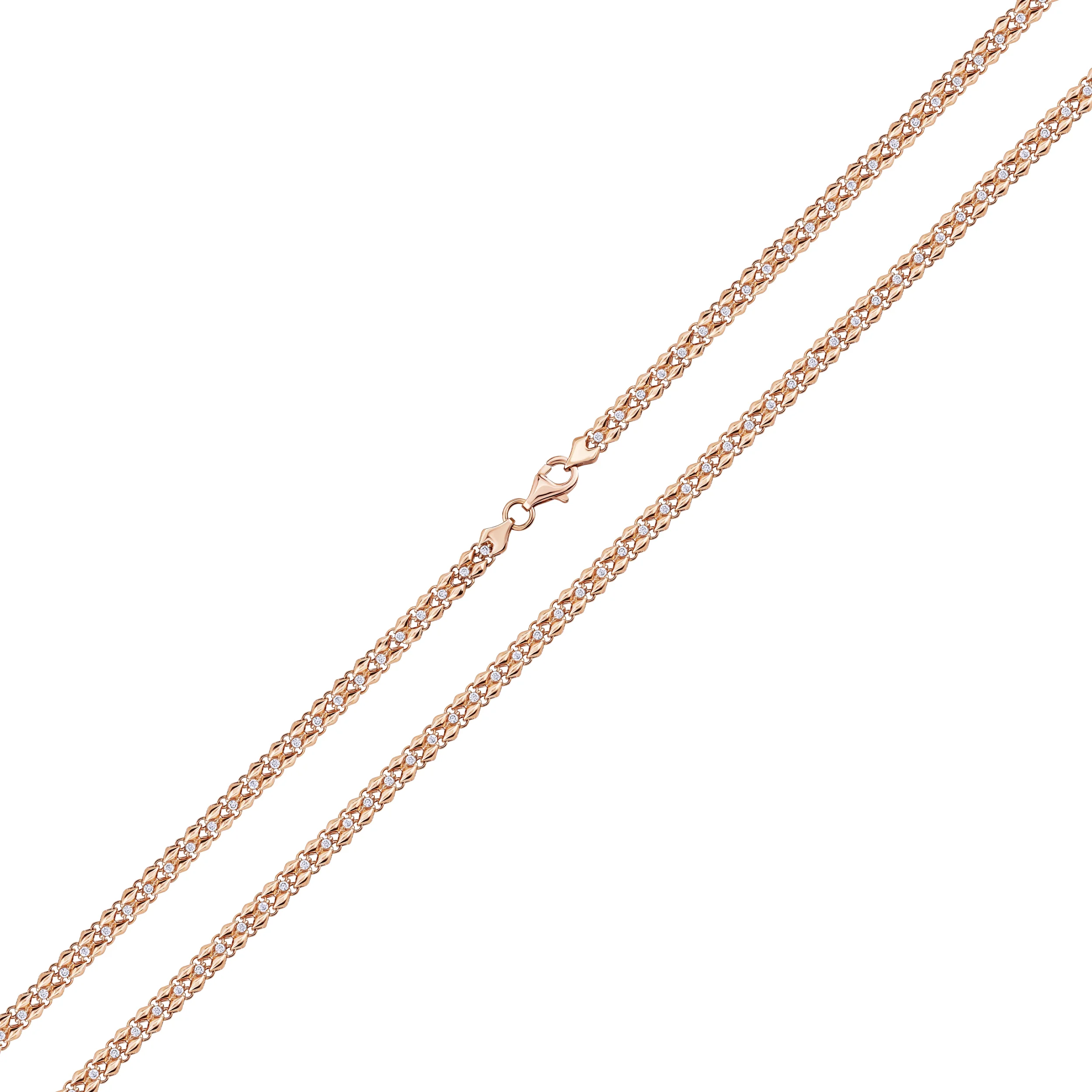 Браслет "Пантера" в красном золоте с фианитами плетение византийское - 1847369