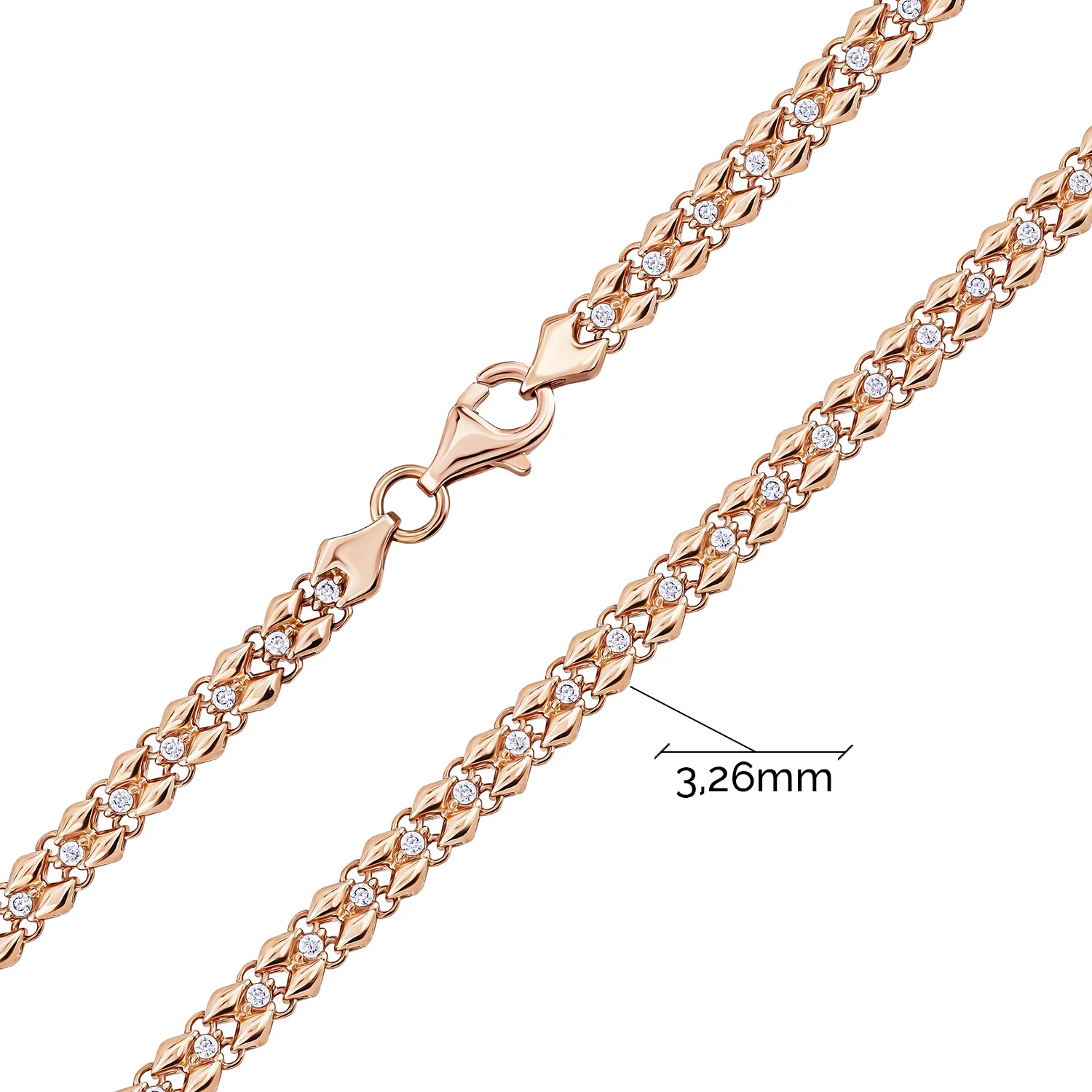 Стильный браслет "Змея" из красного золота с фианитами с плетением фантазия - 1936271