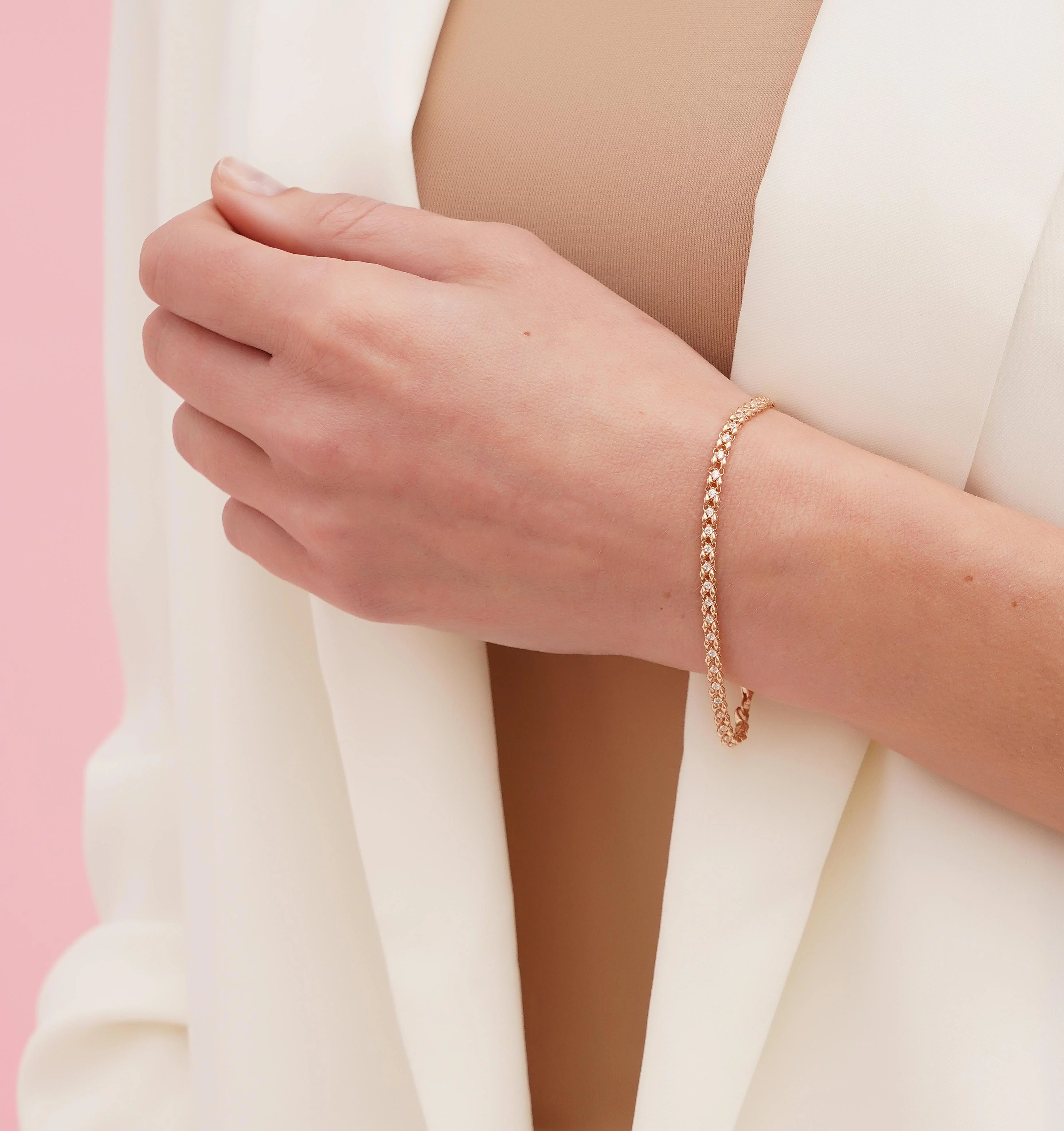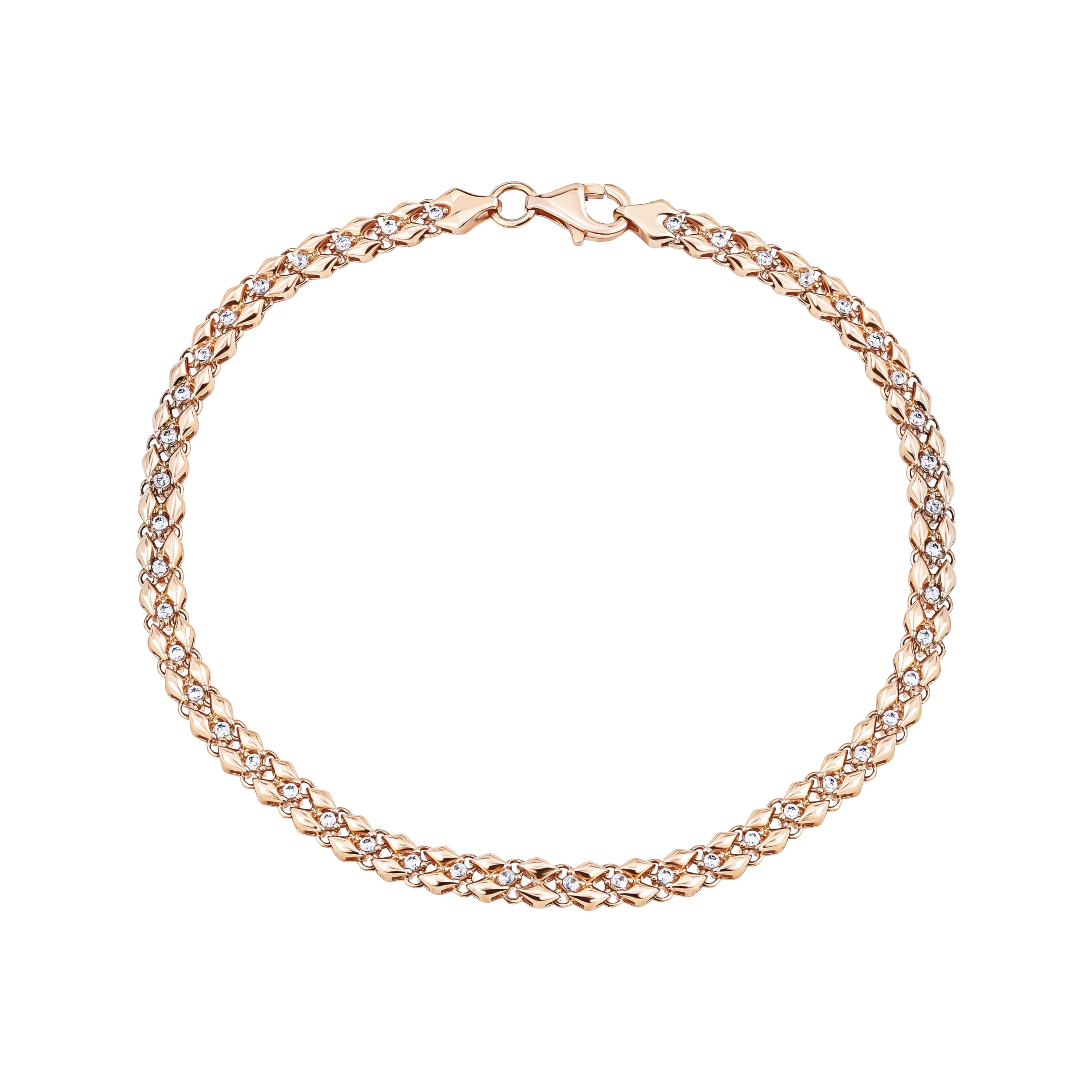 Браслет "Пантера" из красного золота с россыпью фианитов плетение византийское - 1847368