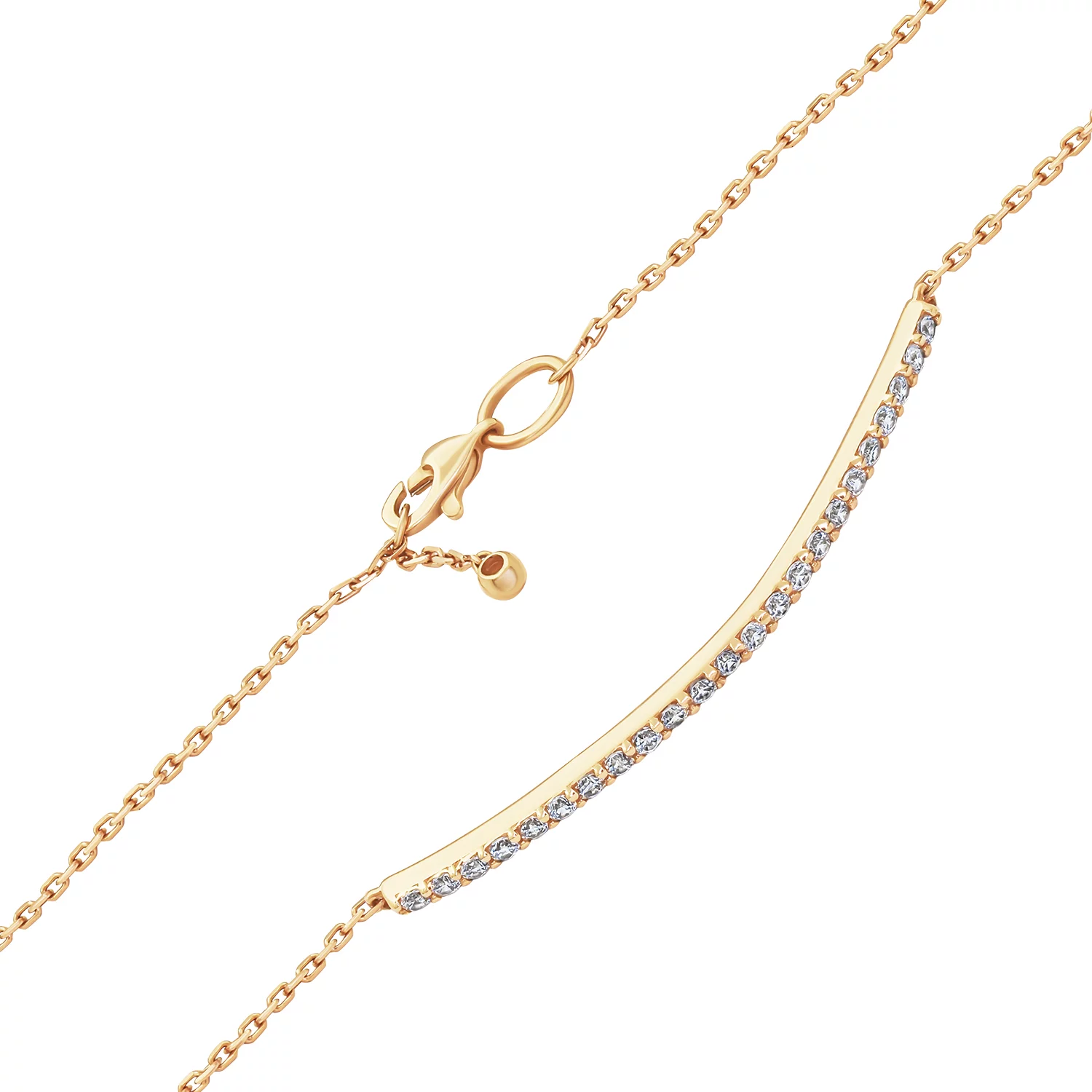 Браслет из красного золота с фианитами "Бесконечность" в якорном плетении - 1807384