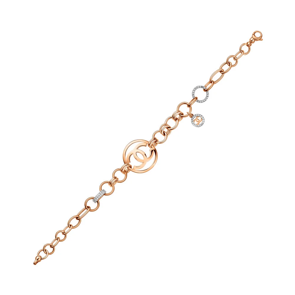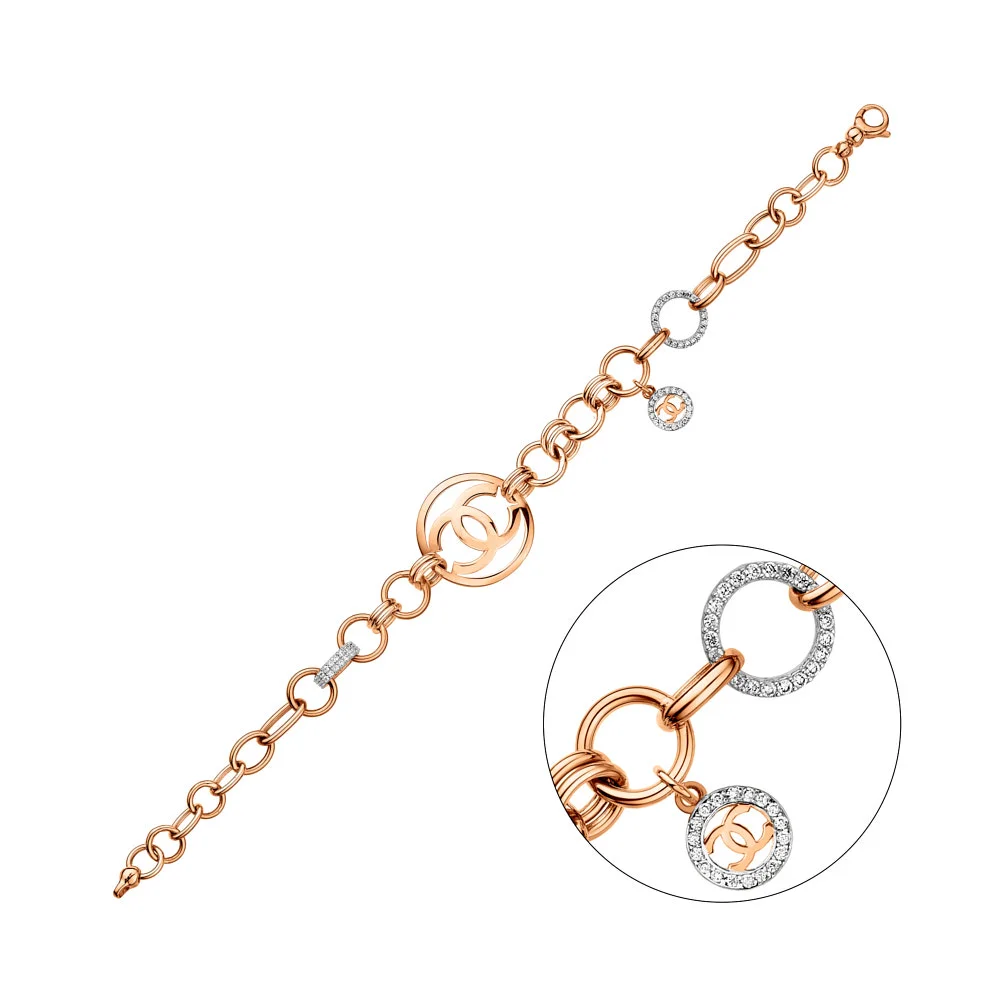 Браслет из красного золота с подвесами и фианитами плетение якорное - 1827276