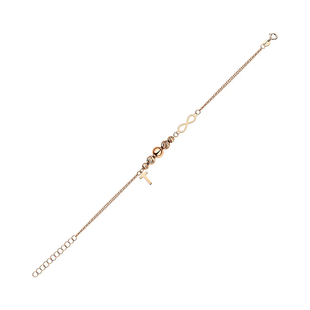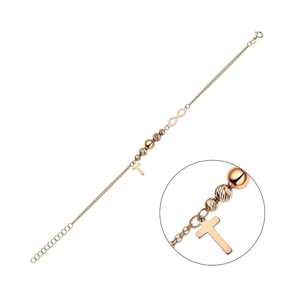 Браслет из красного золота с подвеской "Крестик и Бесконечность" плетение якорное - 1516158