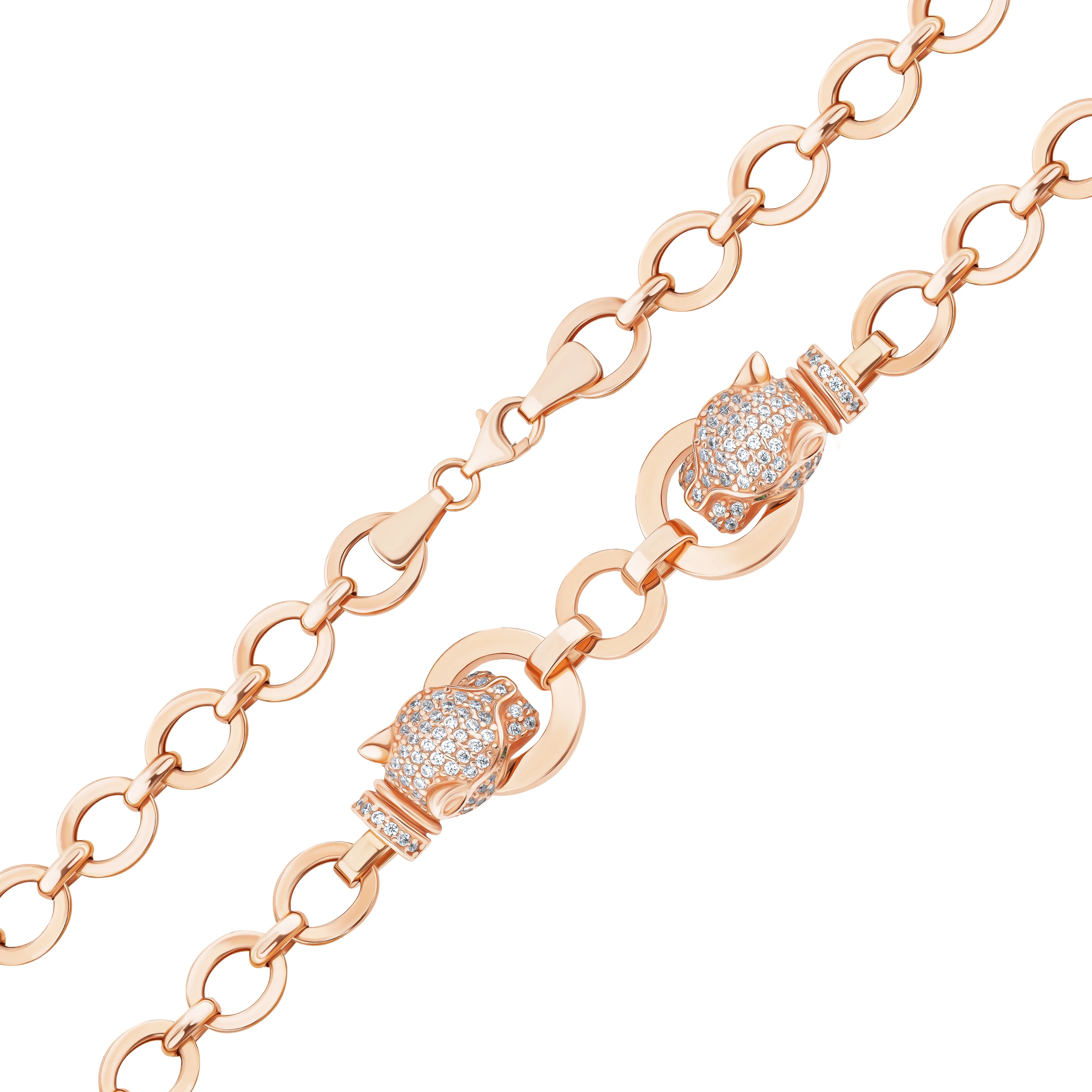 Браслет из красного золота с россыпью фианитов "Пантера" плетение якорь - 1976649