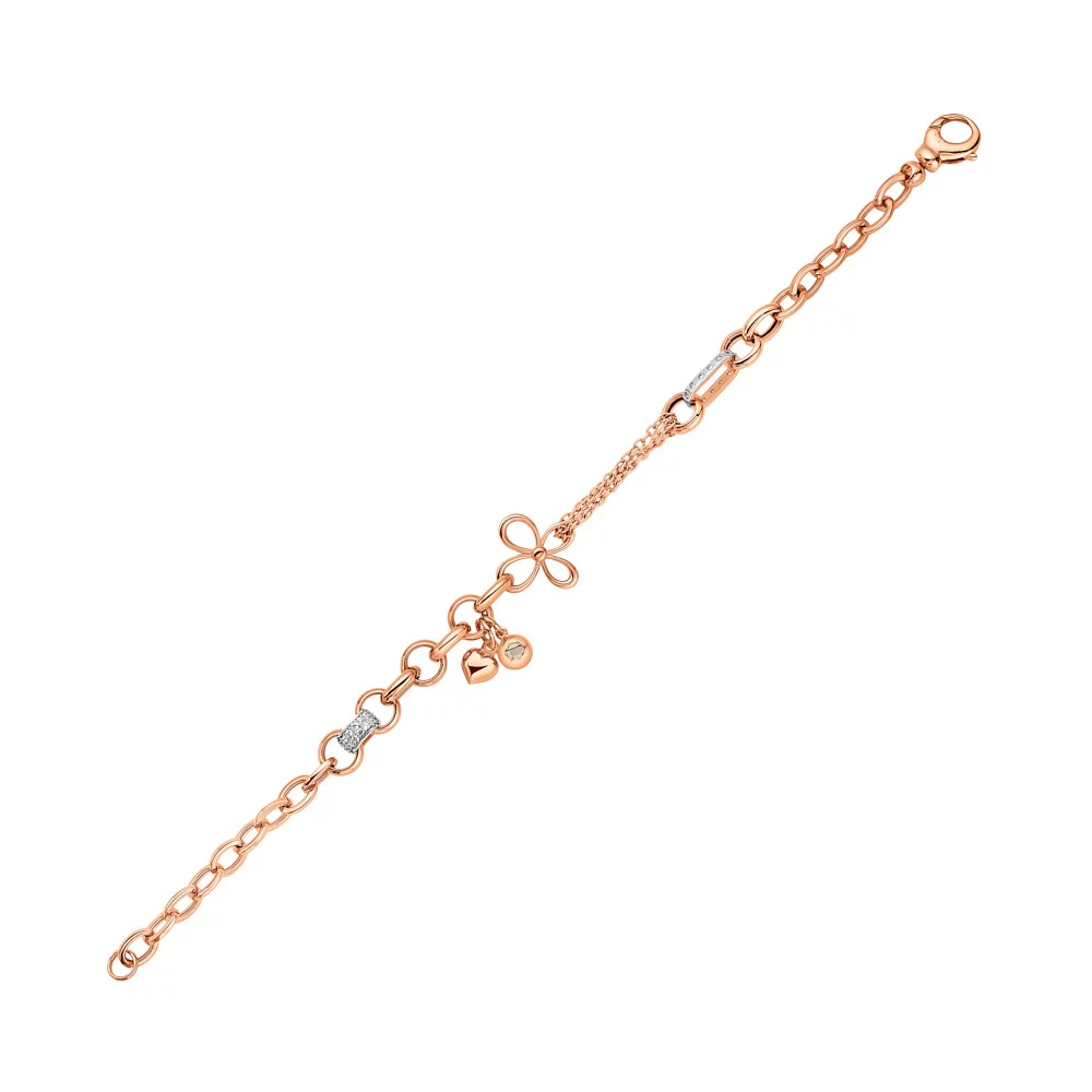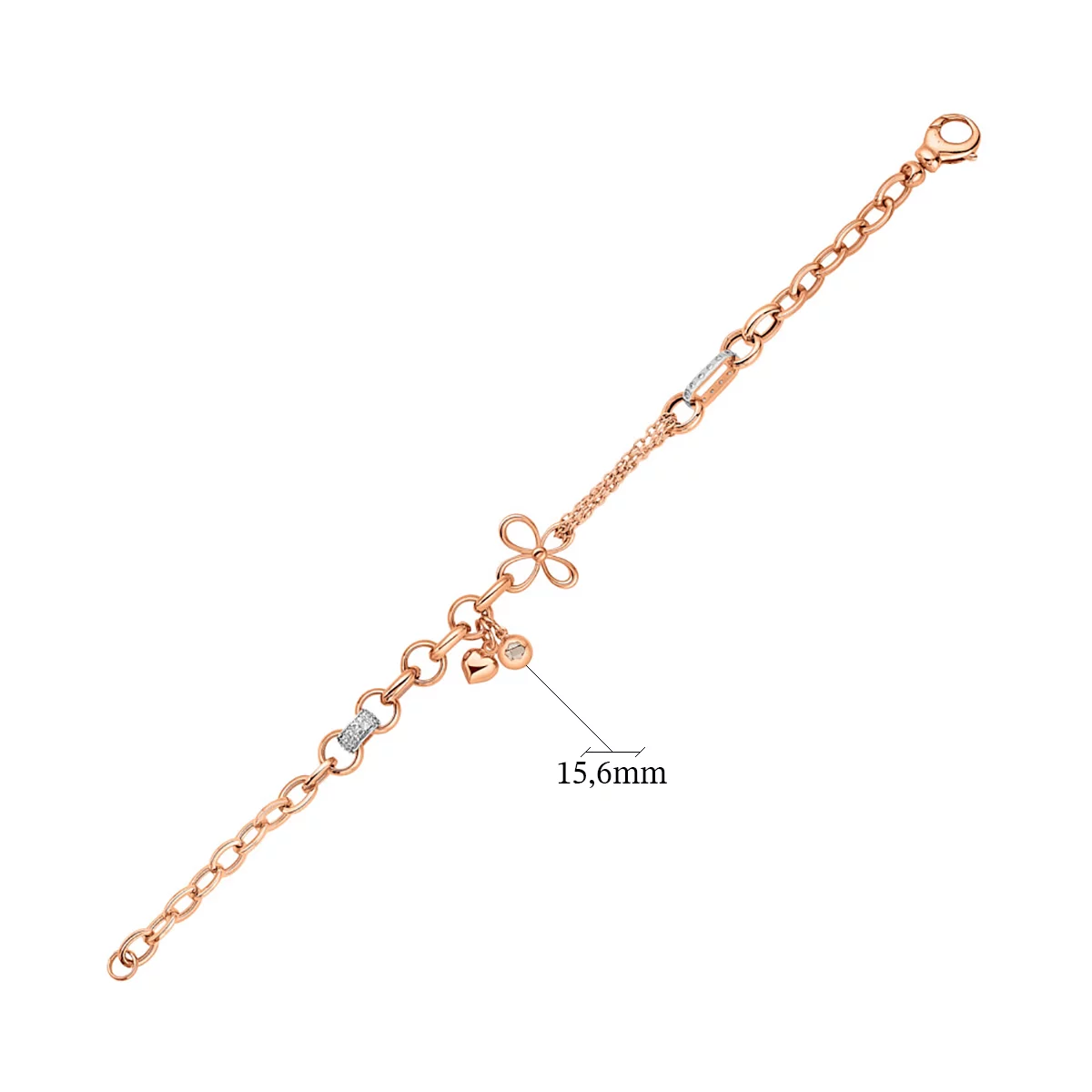 Браслет из красного золота с фианитом и подвесами фантазийное плетение - 1260262