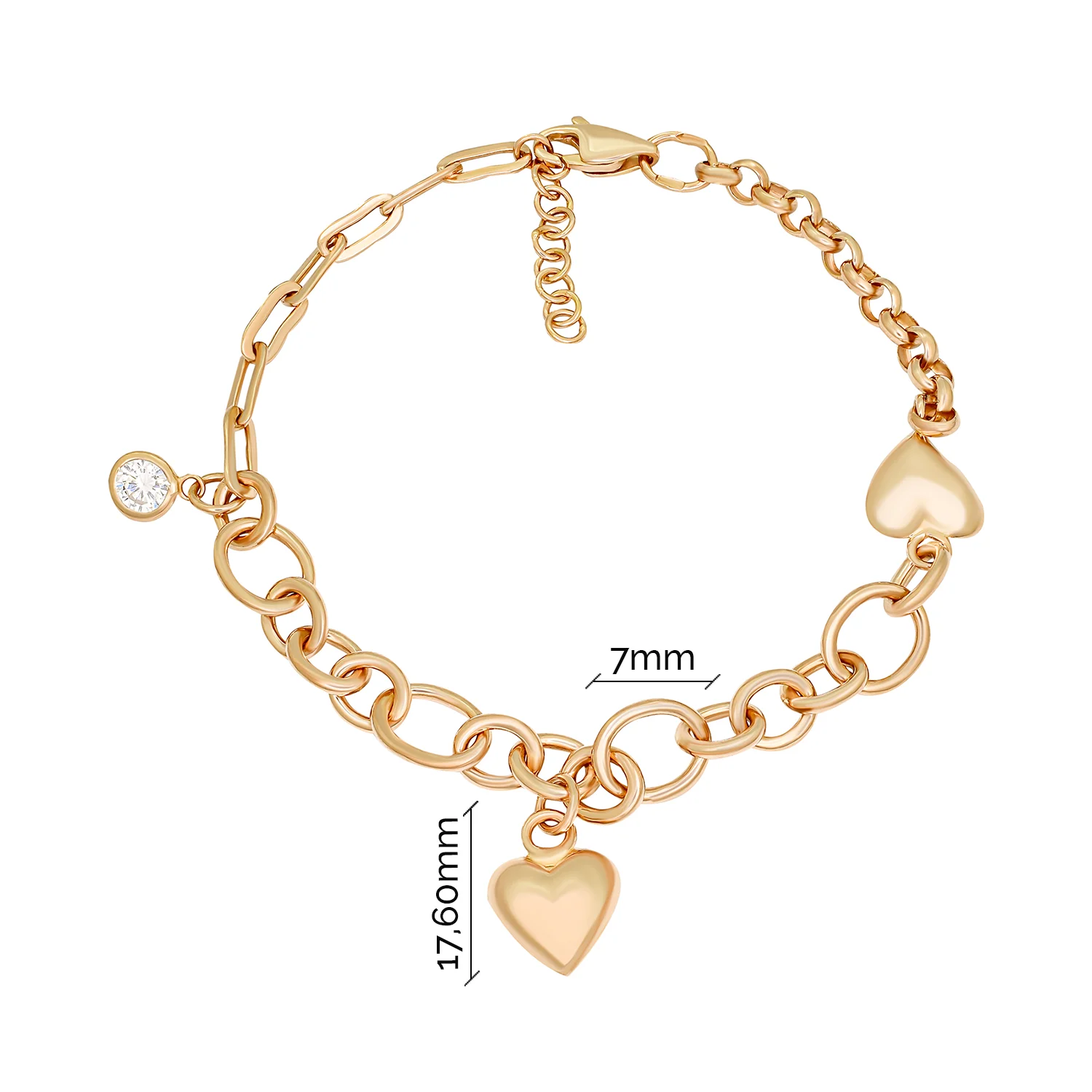 Браслет из комбинированного золота с подвесами "Сердце" и фианитами плетение якорь и шопард - 1698631