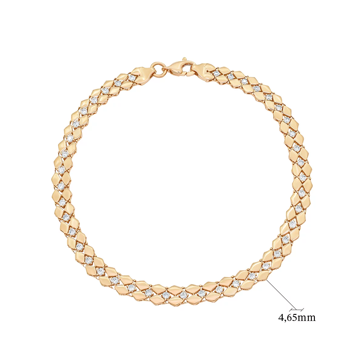 Браслет из красного золота с фианитом с фантазийным плетением - 892637