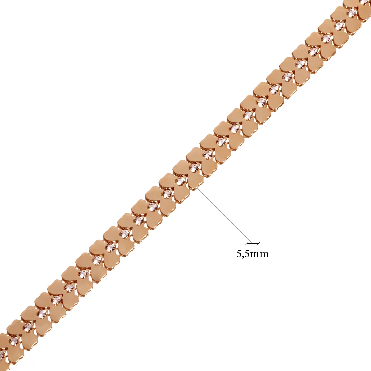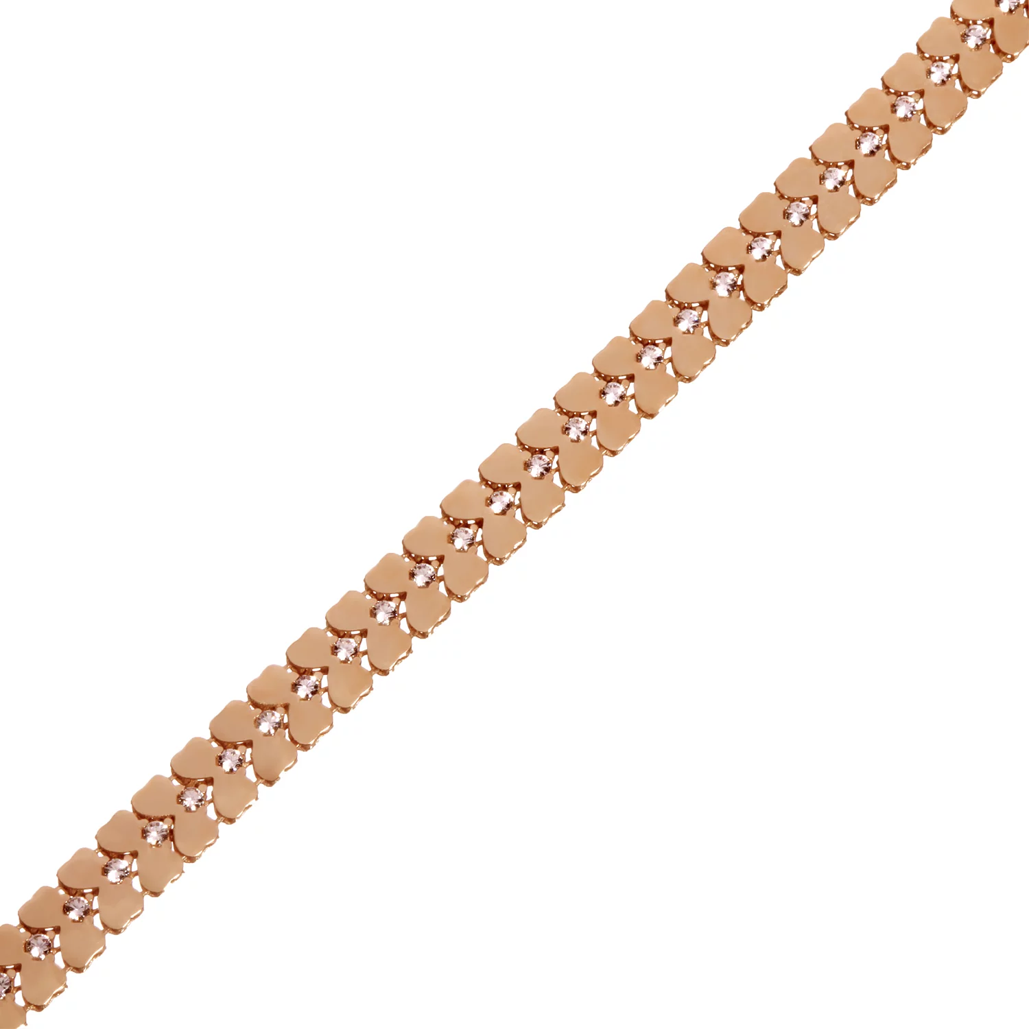 Браслет из красного золота с фианитом фантазийное плетение - 952433