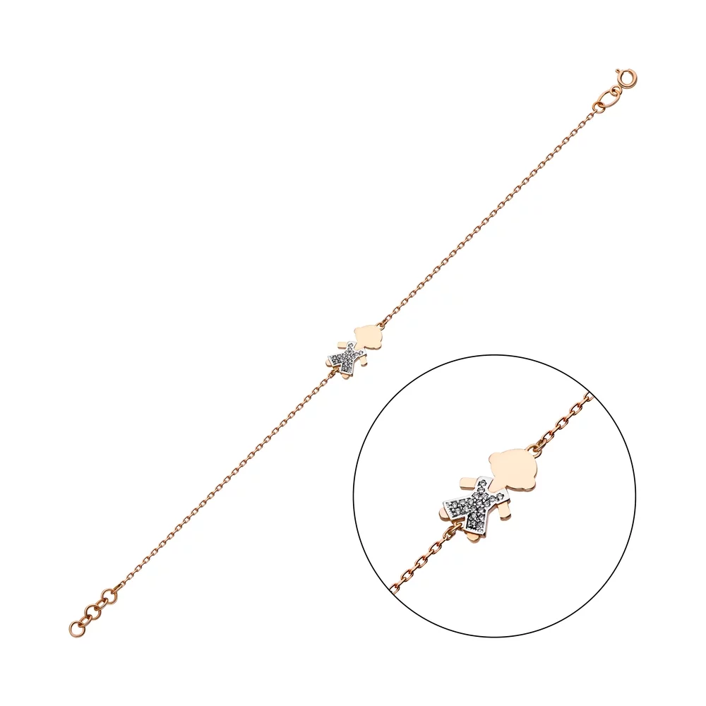 Браслет из красного золота с фианитами "Бесконечность" в якорном плетении - 1807384