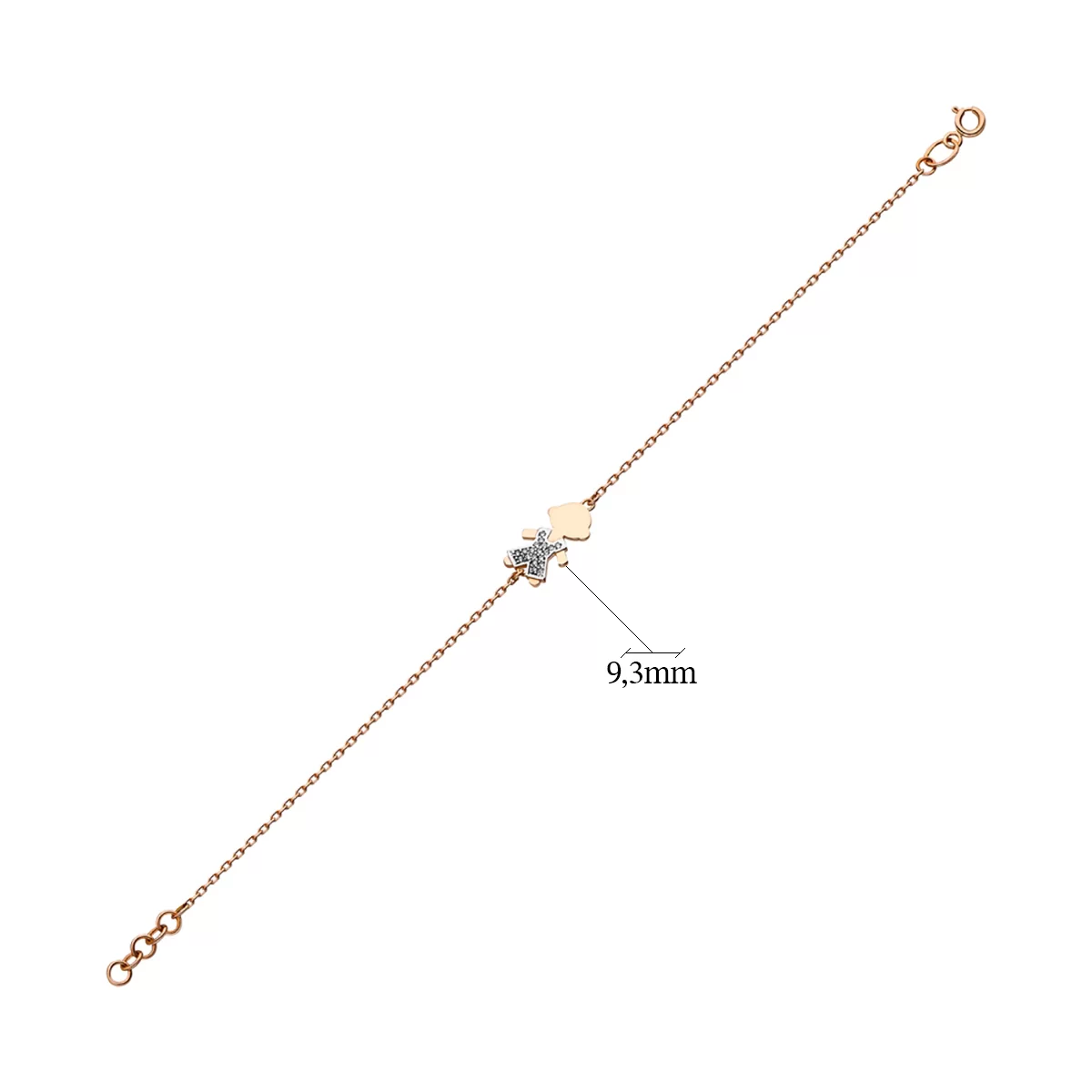 Браслет из красного золота "Ключик" с россыпью фианитов и плетением якорь и шопард - 1858236