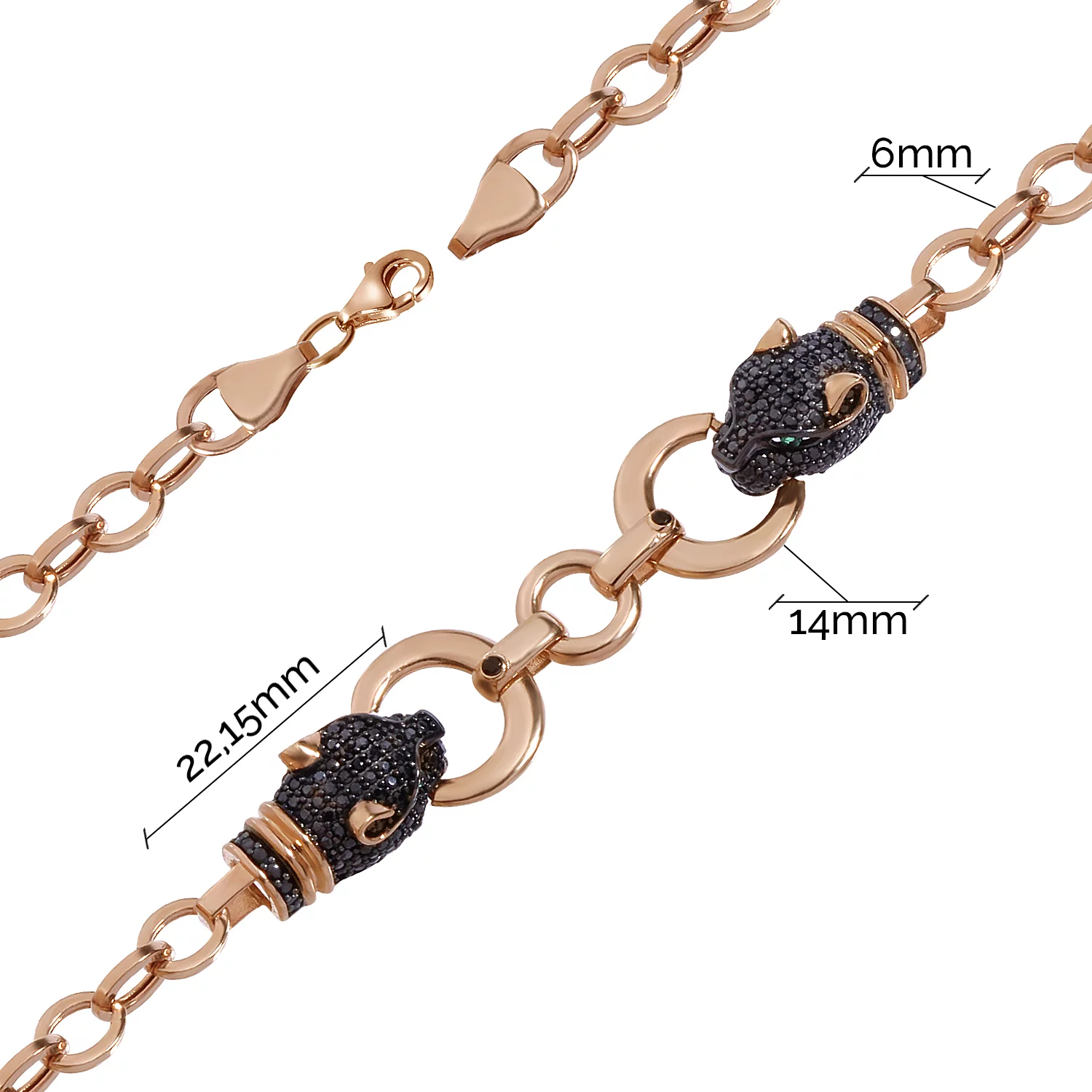 Браслет из красного золота с фианитами "Бесконечность" в якорном плетении - 1807384
