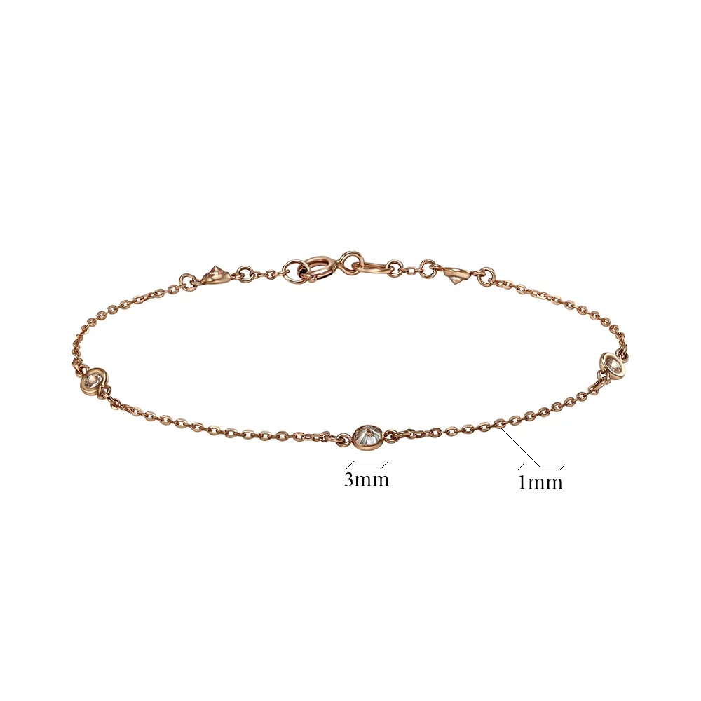 Браслет из красного золота с подвесками и фианитом в плетении якорь и шопард - 963836