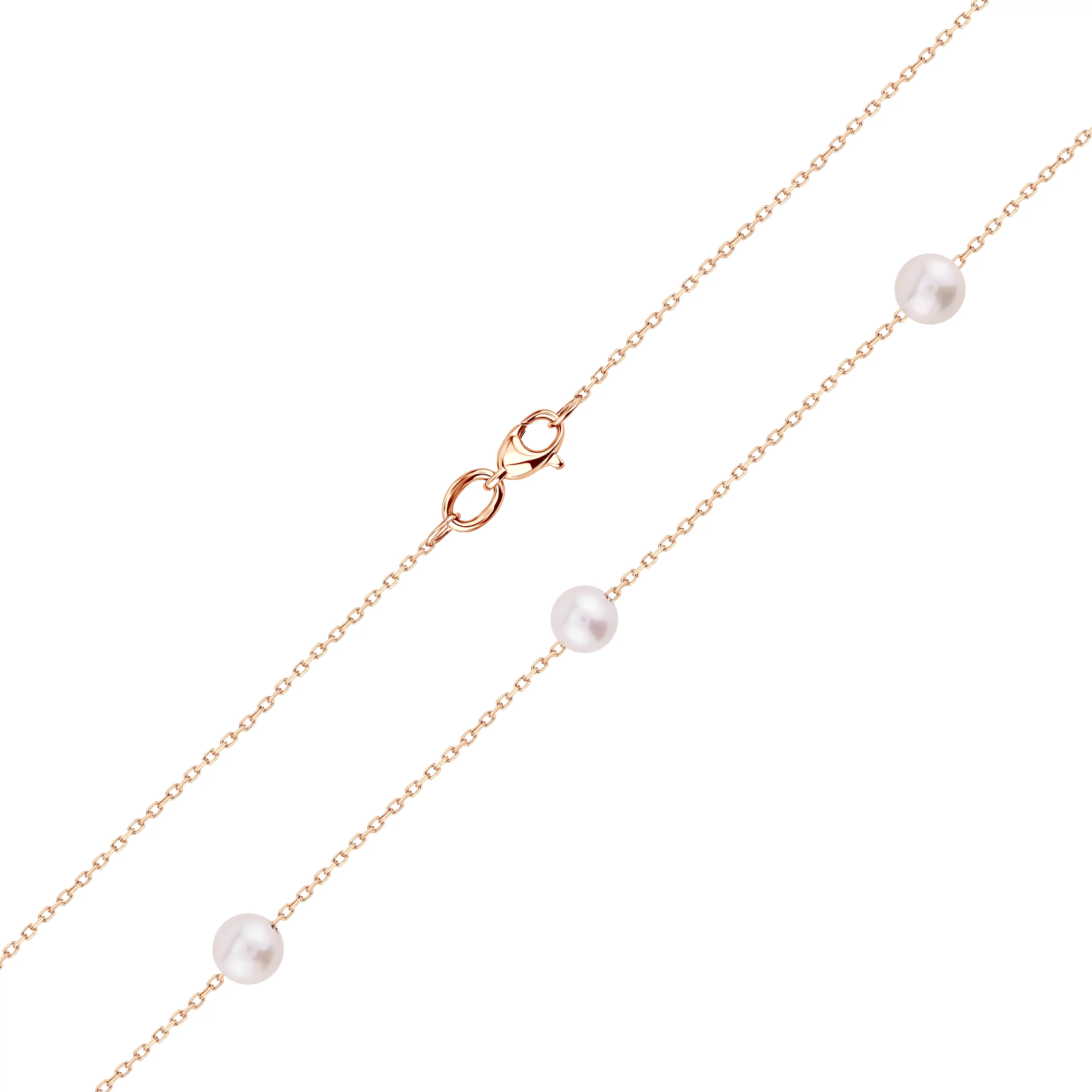 Браслет из красного золота с шариками и алмазной гранью плетение якорь - 1698647