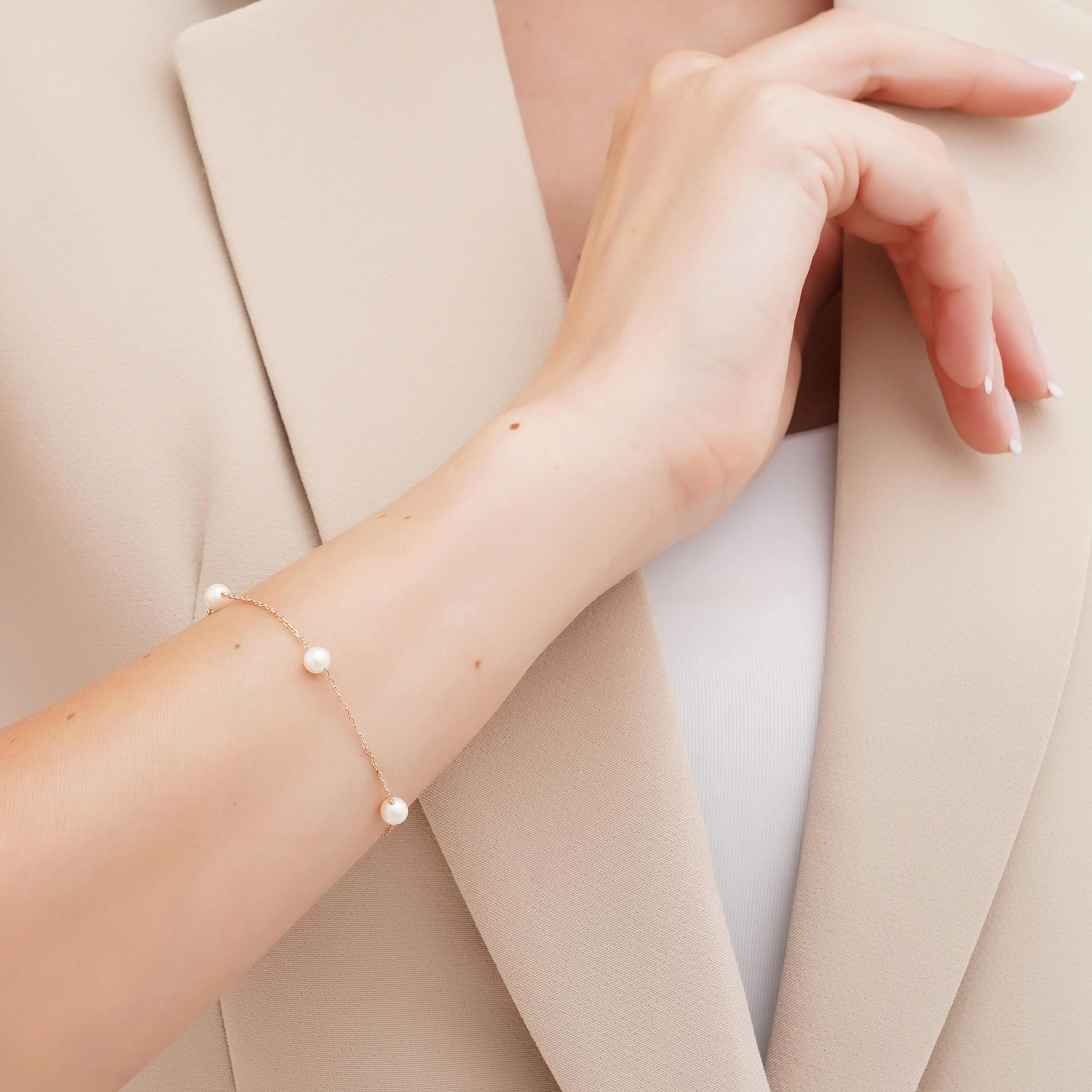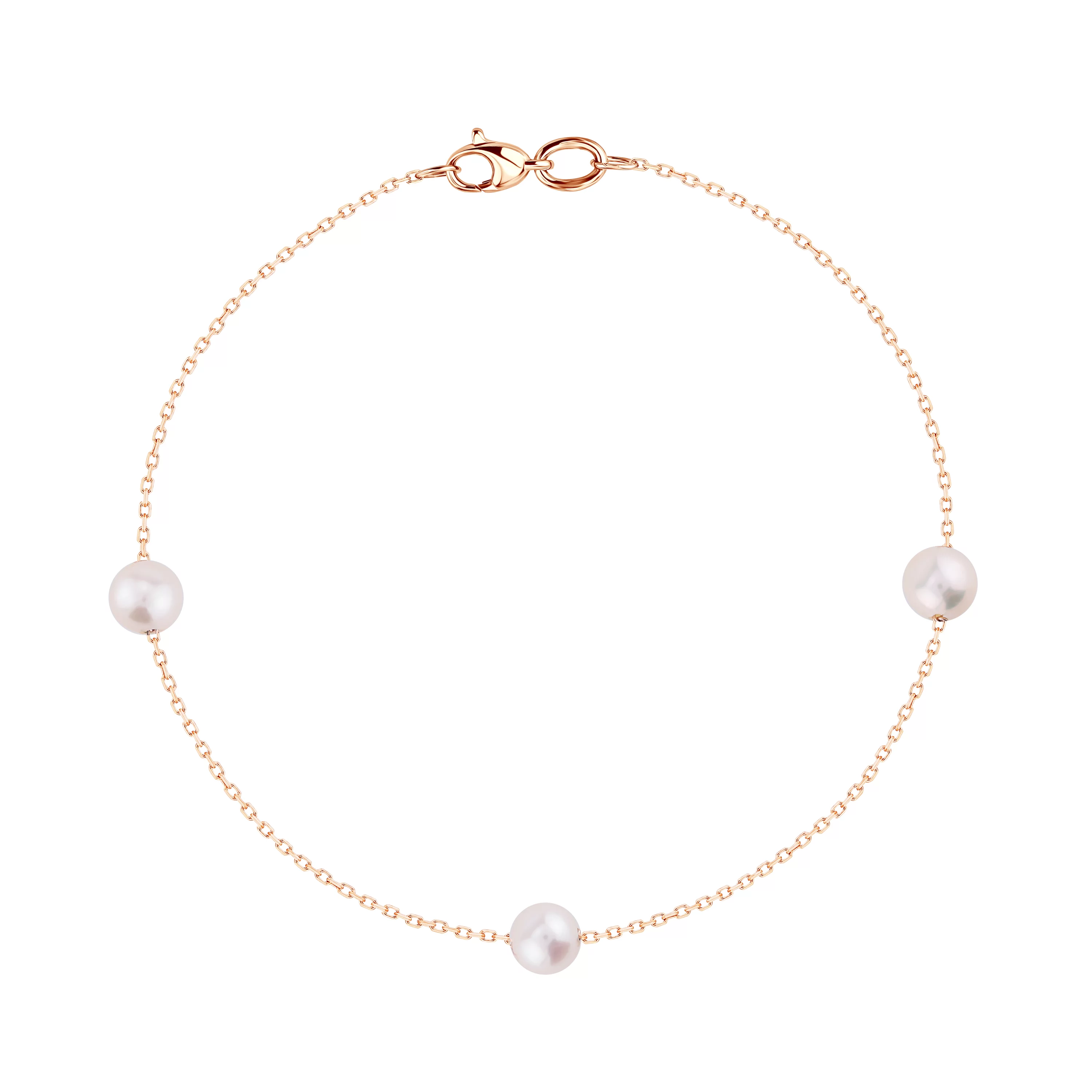 Тройной браслет из комбинированного золота "Шарики" плетение якорь - 1824925