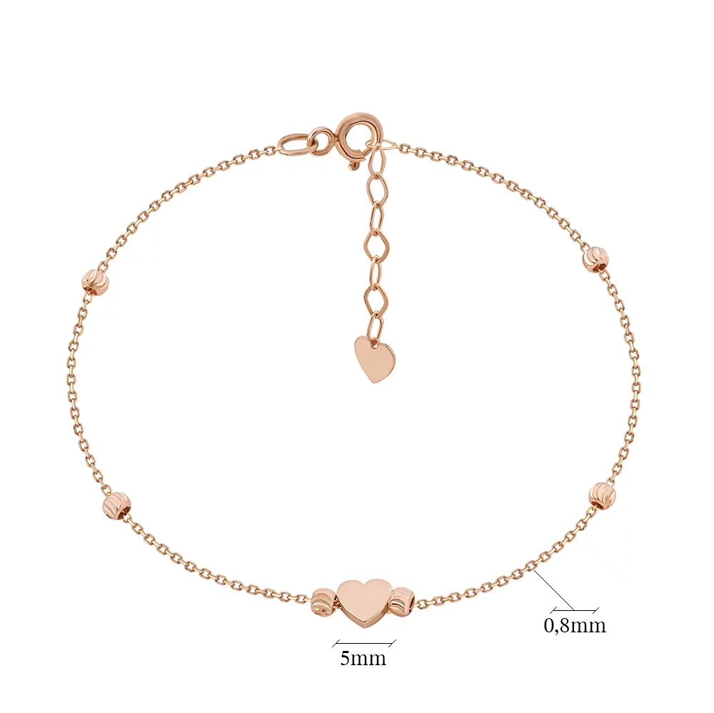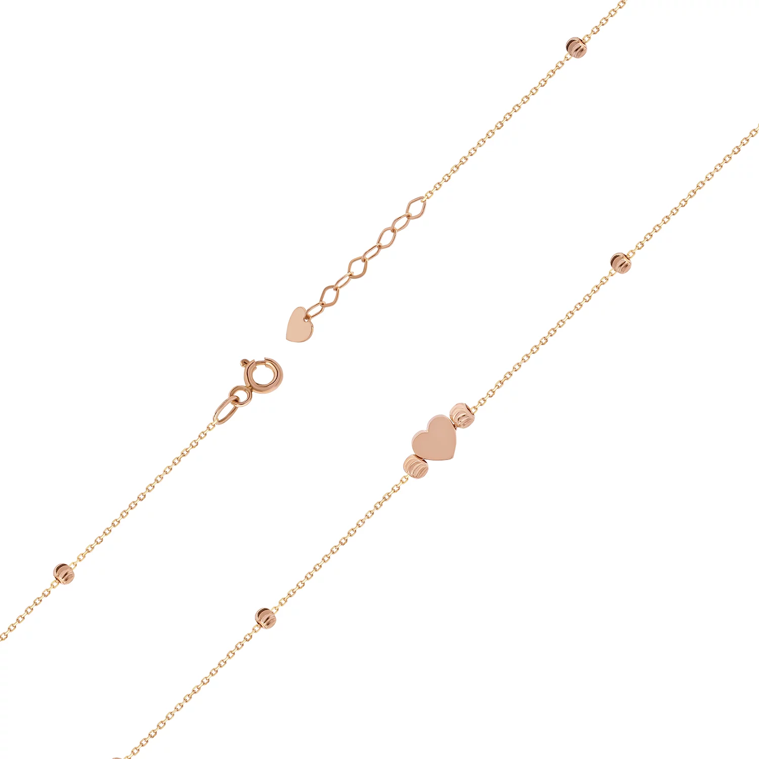 Браслет из красного золота "Сердечко" якорное плетение - 1453056