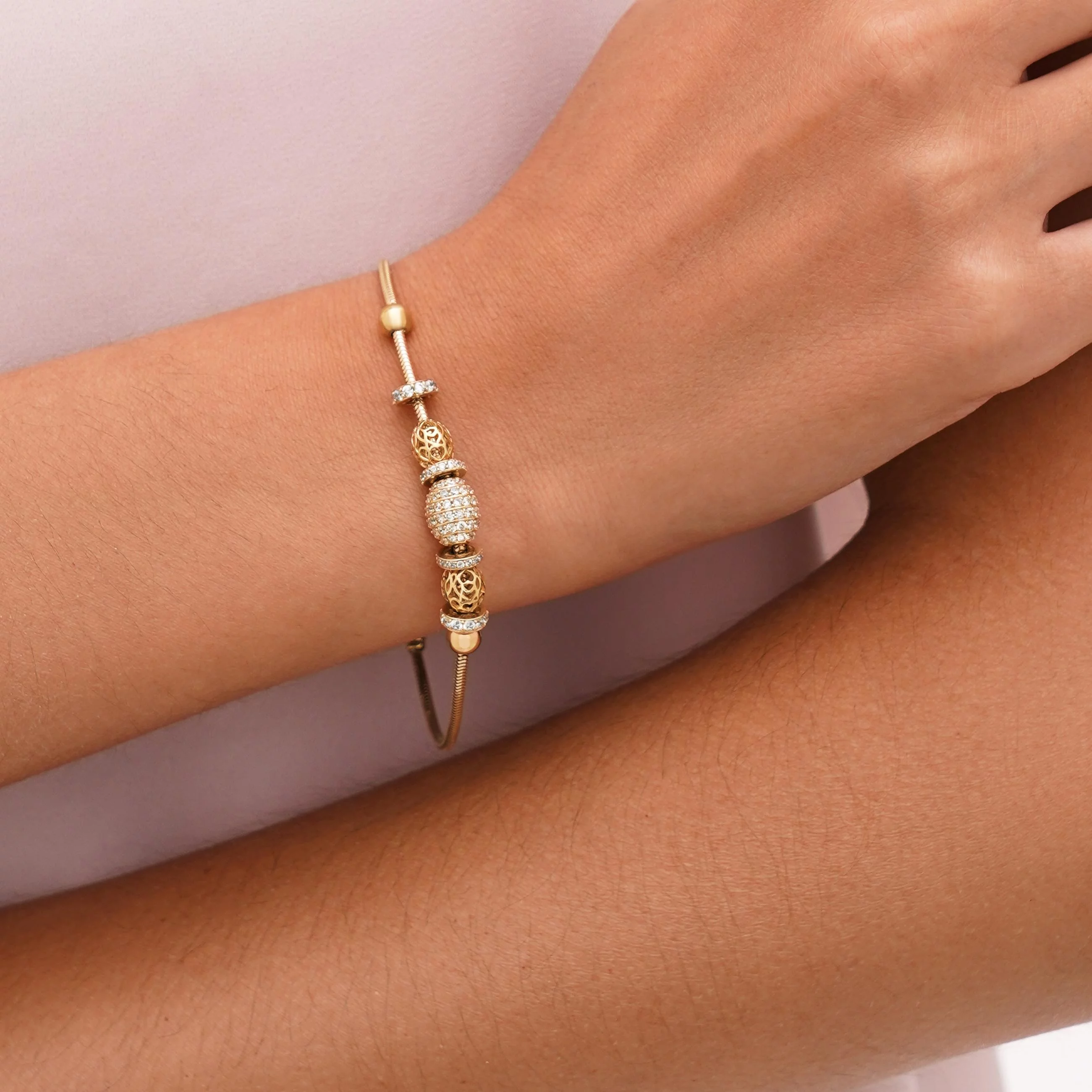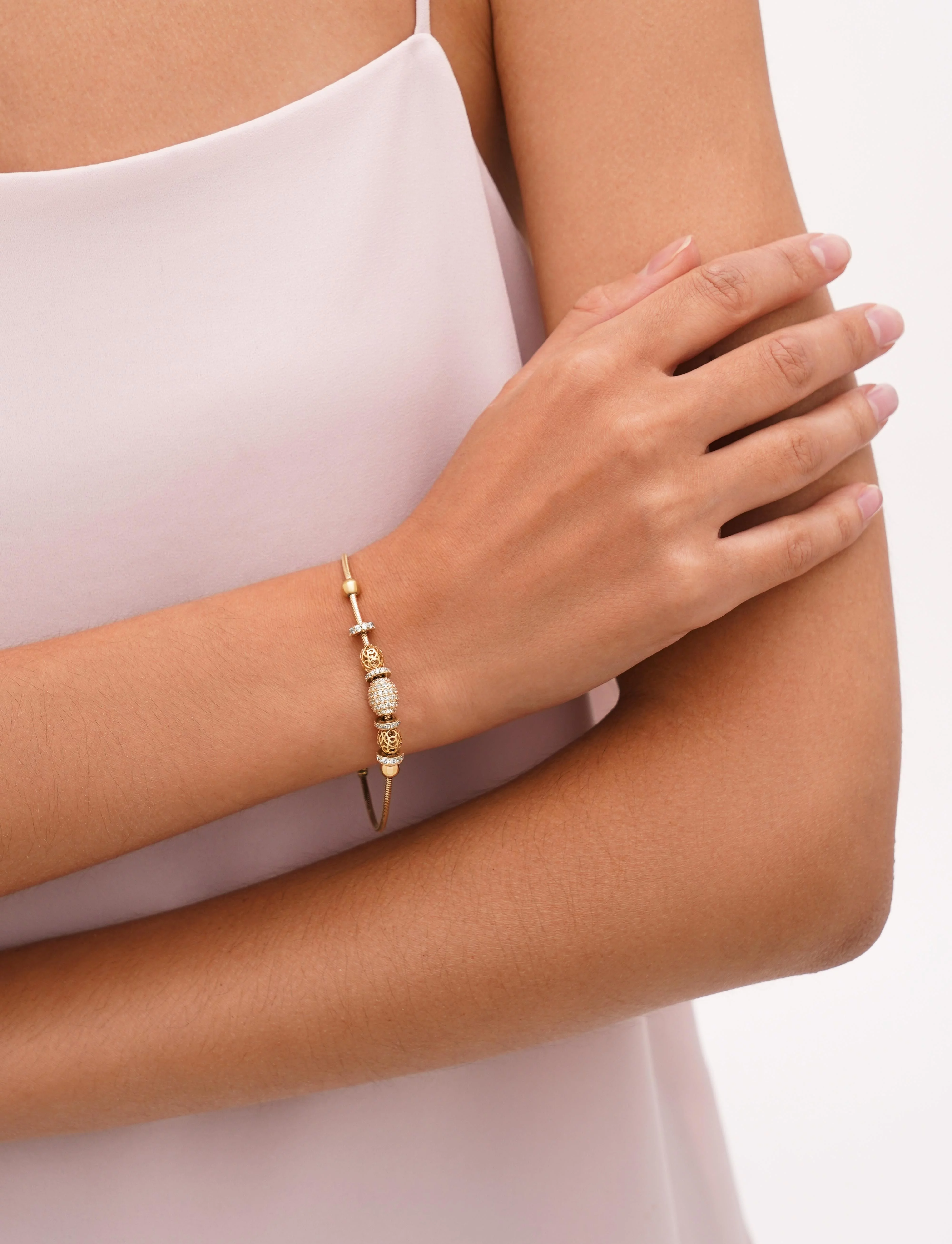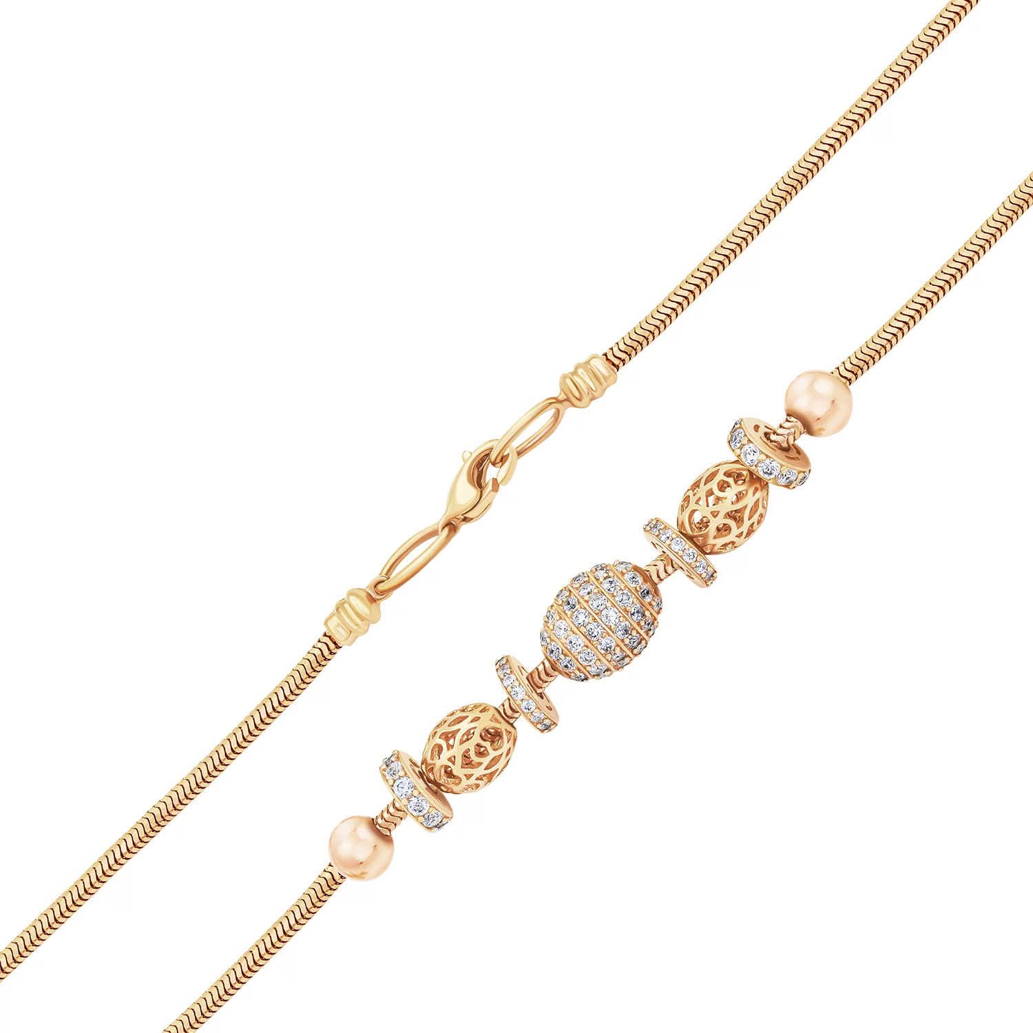 Браслет "Шары" из желтого золота с подвесами с фианитами и плетением снейк - 1856538