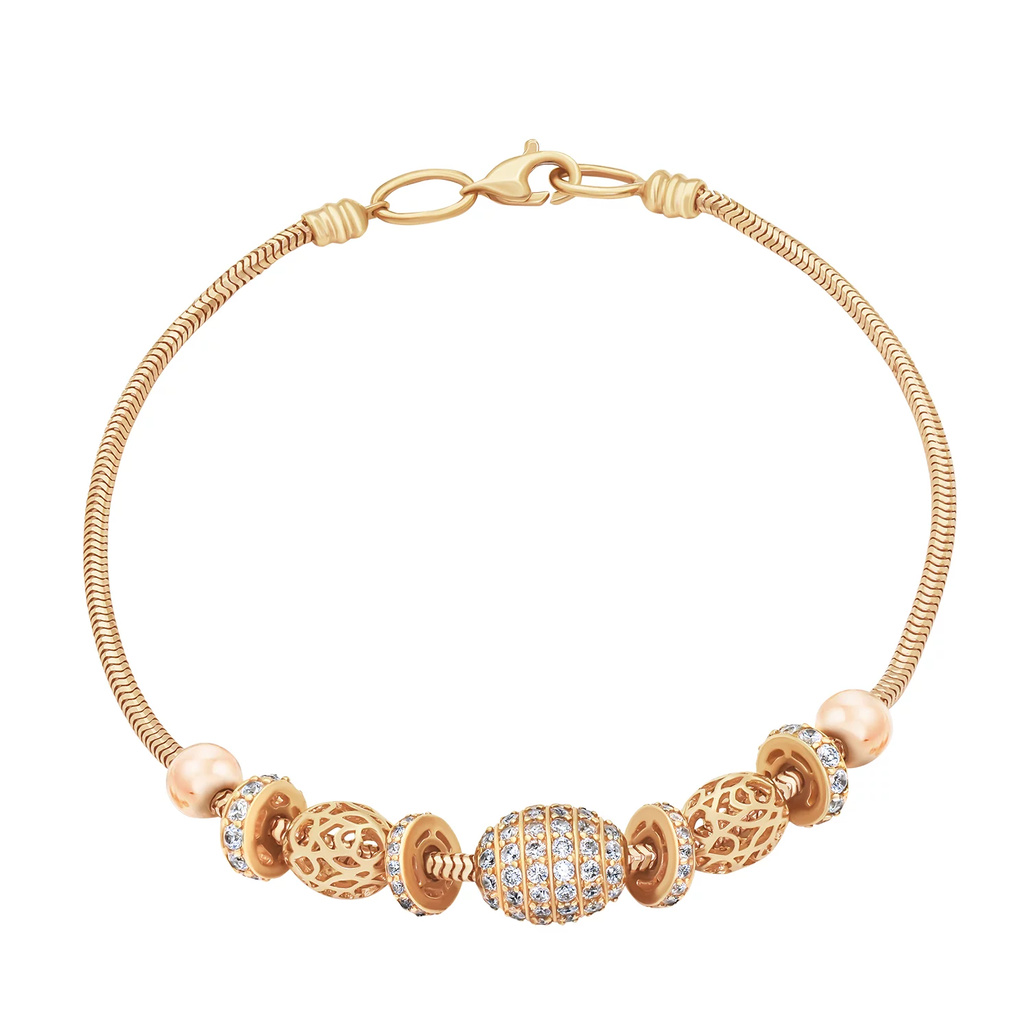 Браслет с шармами и фианитами из красного золота плетение снейк - 1737931
